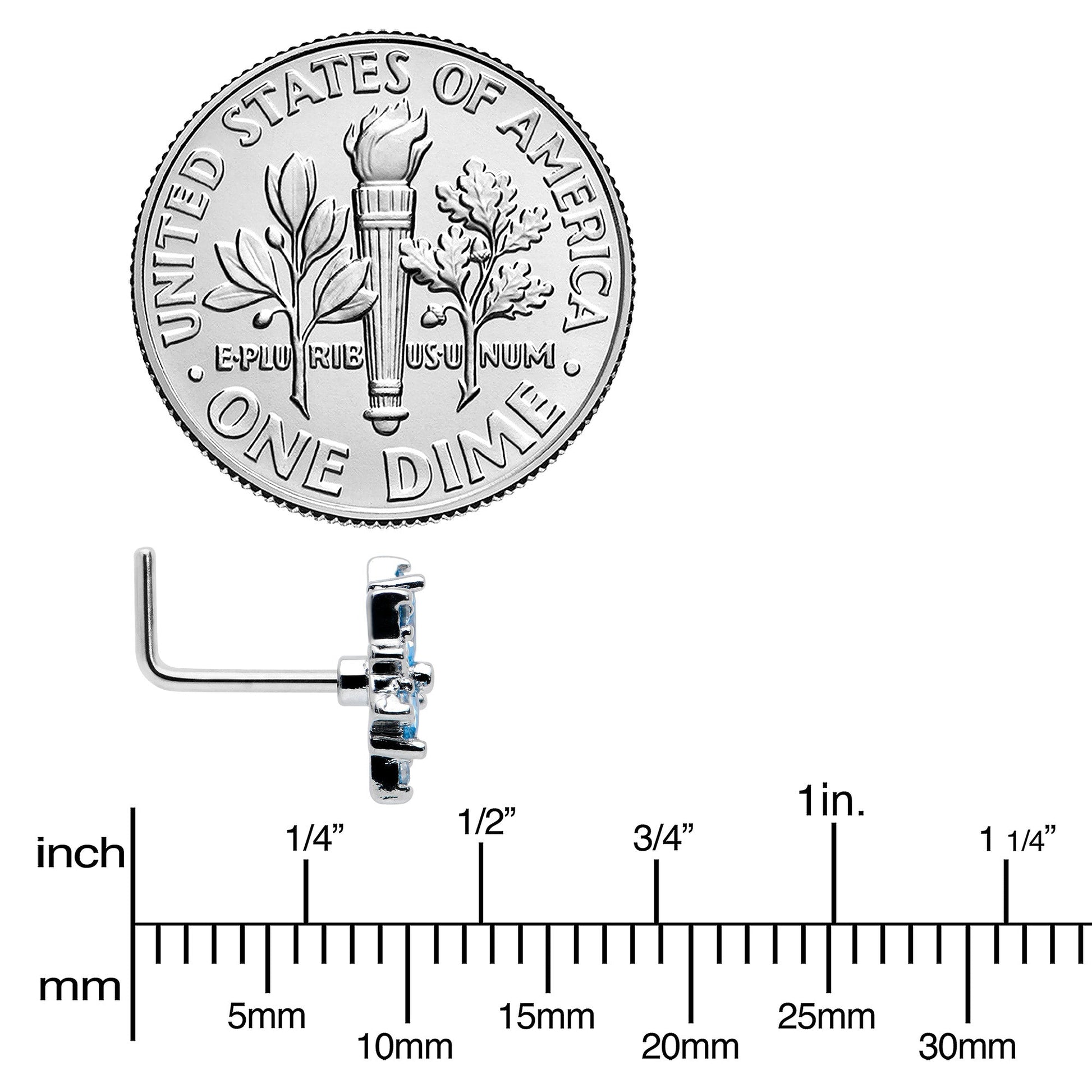 20 Gauge 7mm Blue CZ Gem Snowflake Blues L Shape Nose Ring