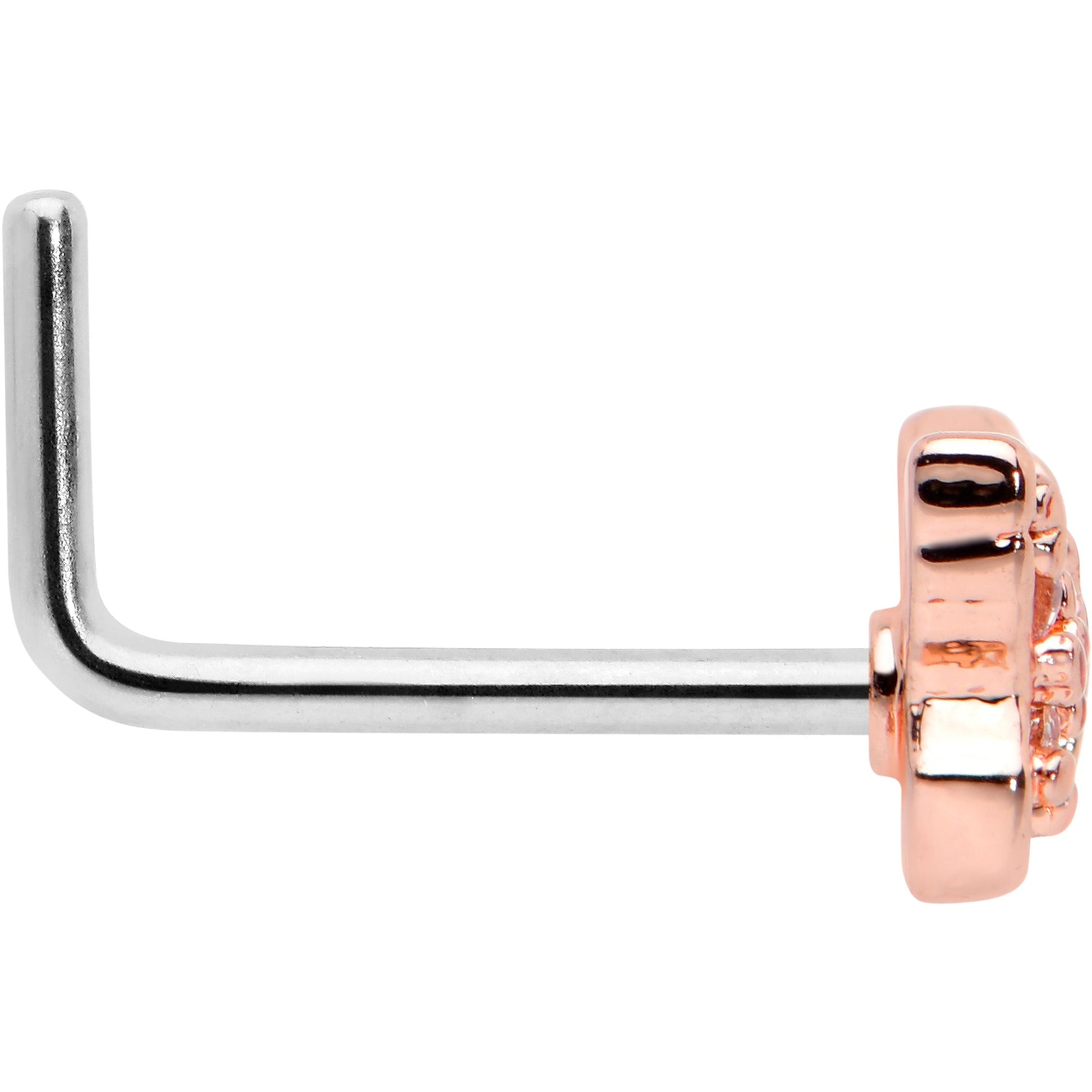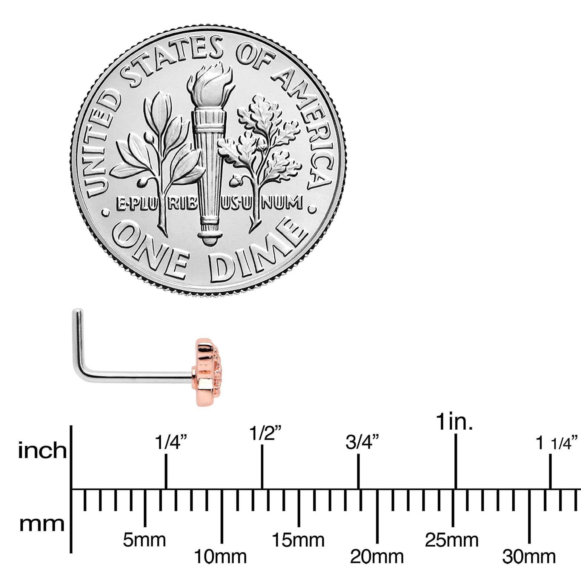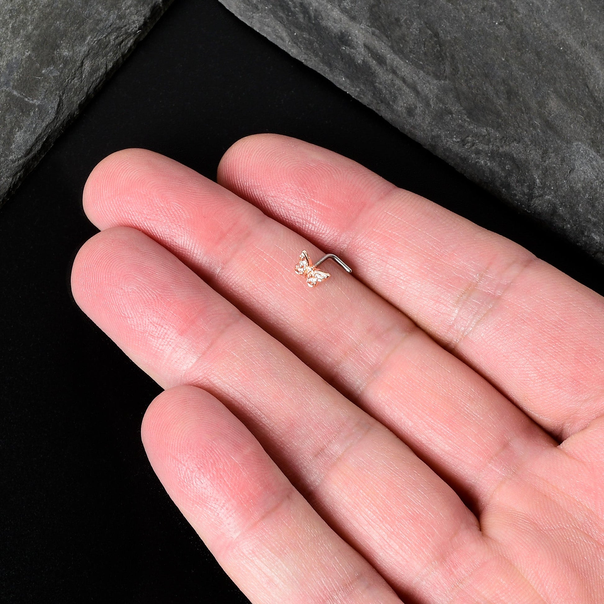 20 Gauge 7mm Clear Gem Baroque Rosy Butterfly L Shape Nose Ring