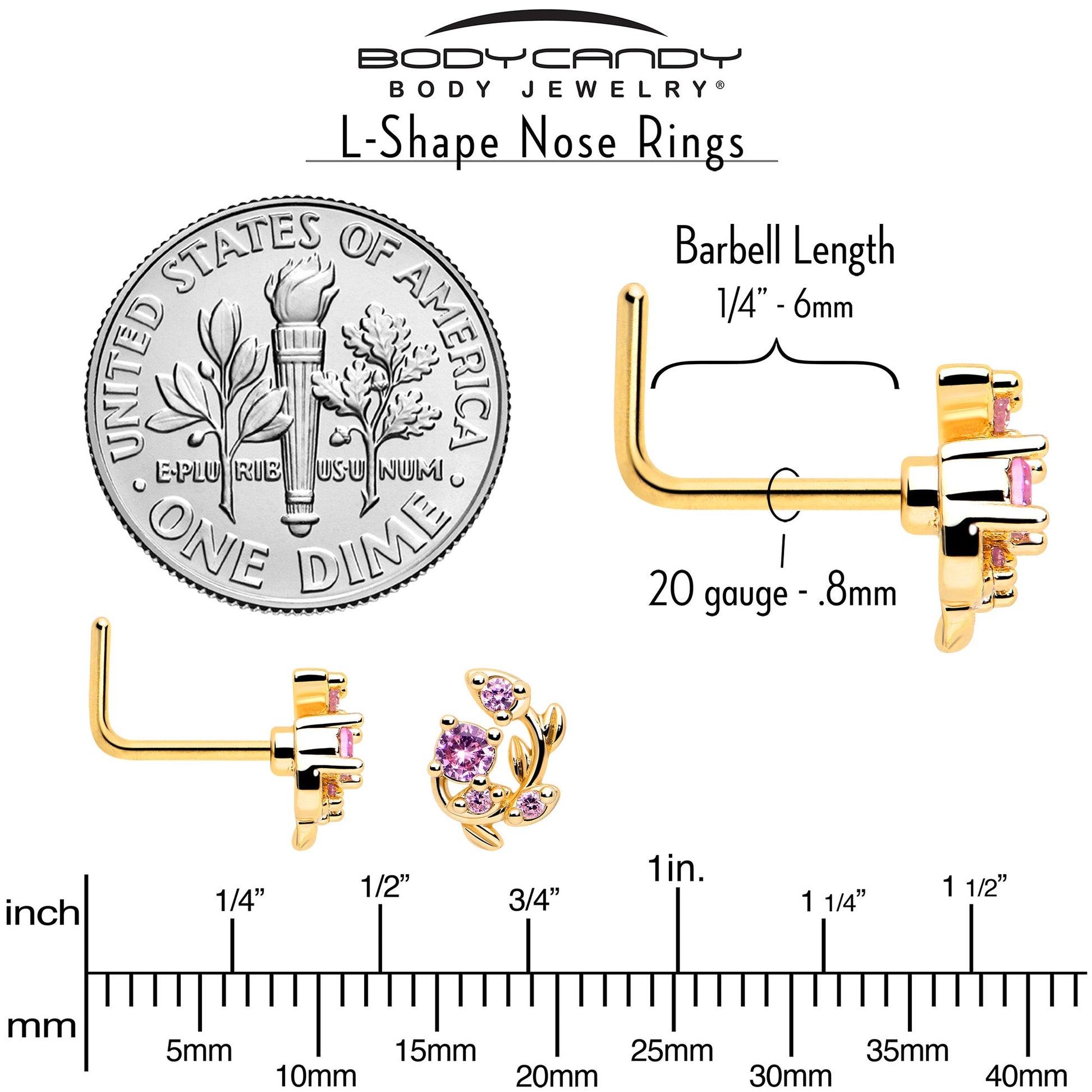 20 Gauge 7mm Pink Gem Gold Tone Twining Vine L Shape Nose Ring