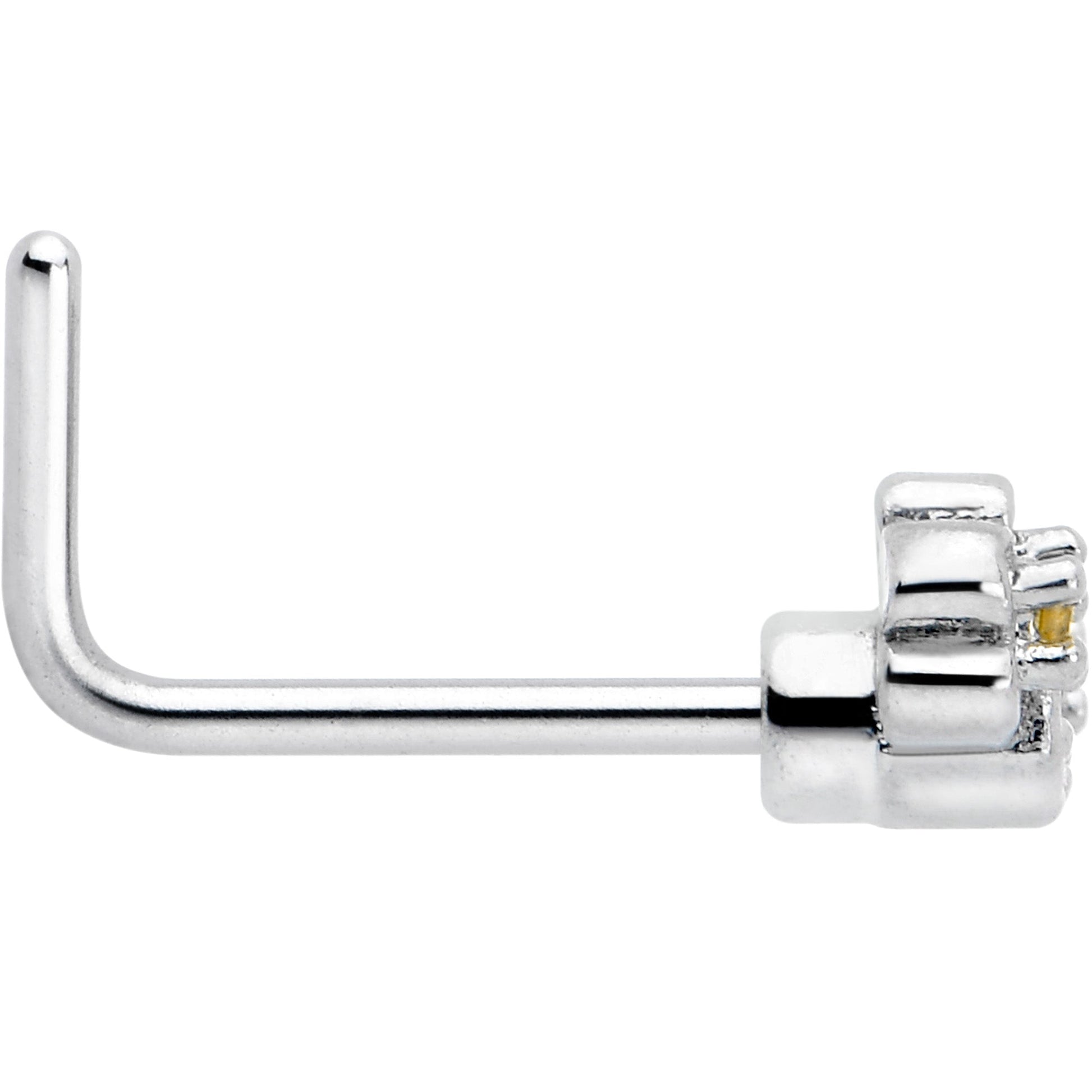 20G 7mm Yellow CZ Gem Flower Honeycomb L Shape Nose Ring