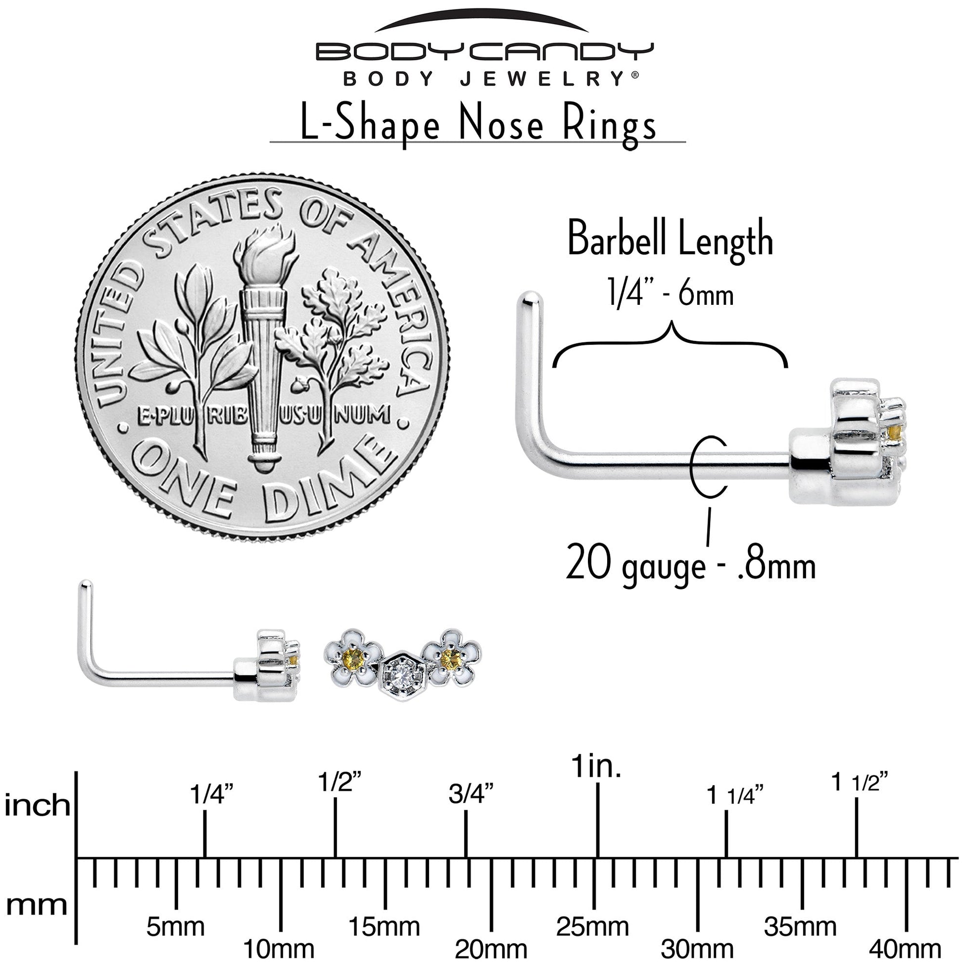 20 Gauge 7mm Yellow CZ Gem Flower Honeycomb L Shape Nose Ring