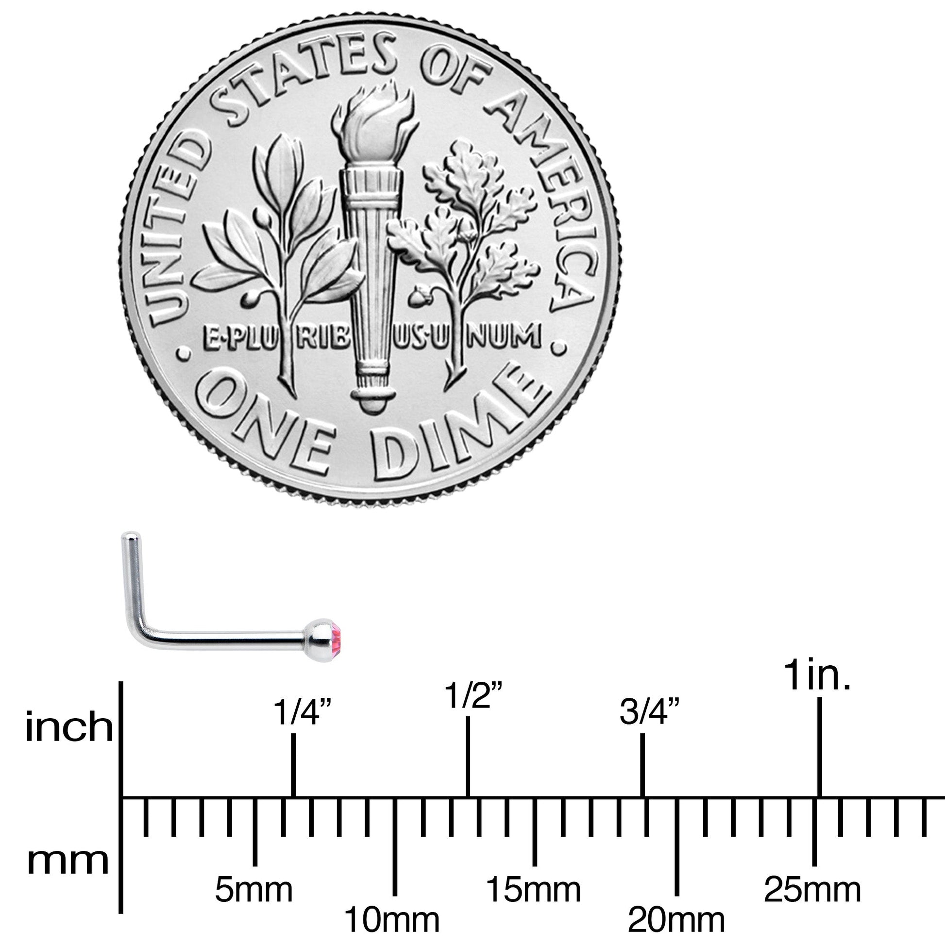 20G Stainless Steel Pink Gem Micro Nose Ring L-Shaped