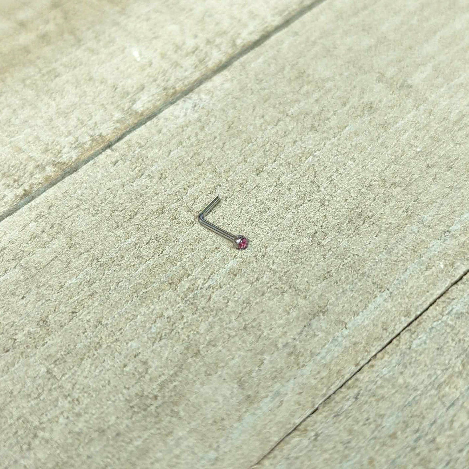 Hypoallergenic jewelry for sensitive skinPink gem nose piercing. Micro 1.57mm nose stud piercing with an l-shape. Sexy and discreet micro L-shape nose ring. Series 157 nose studs. Gem nose ring body jewelry made from 316L surgical steel.