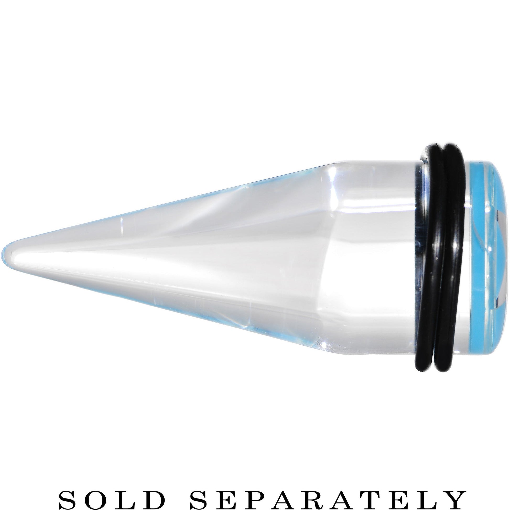 Hypoallergenic jewelry for sensitive skin.Item sold individually, purchase two for a pair. Always have a wish on hand when you wear this star acrylic ear expander taper plug. The solid clear acrylic 20mm ear stretcher is topped with light blue and a clear star at the center. Pierced body jewelry straight taper ear gauge plug comes with two rubber O-rings.