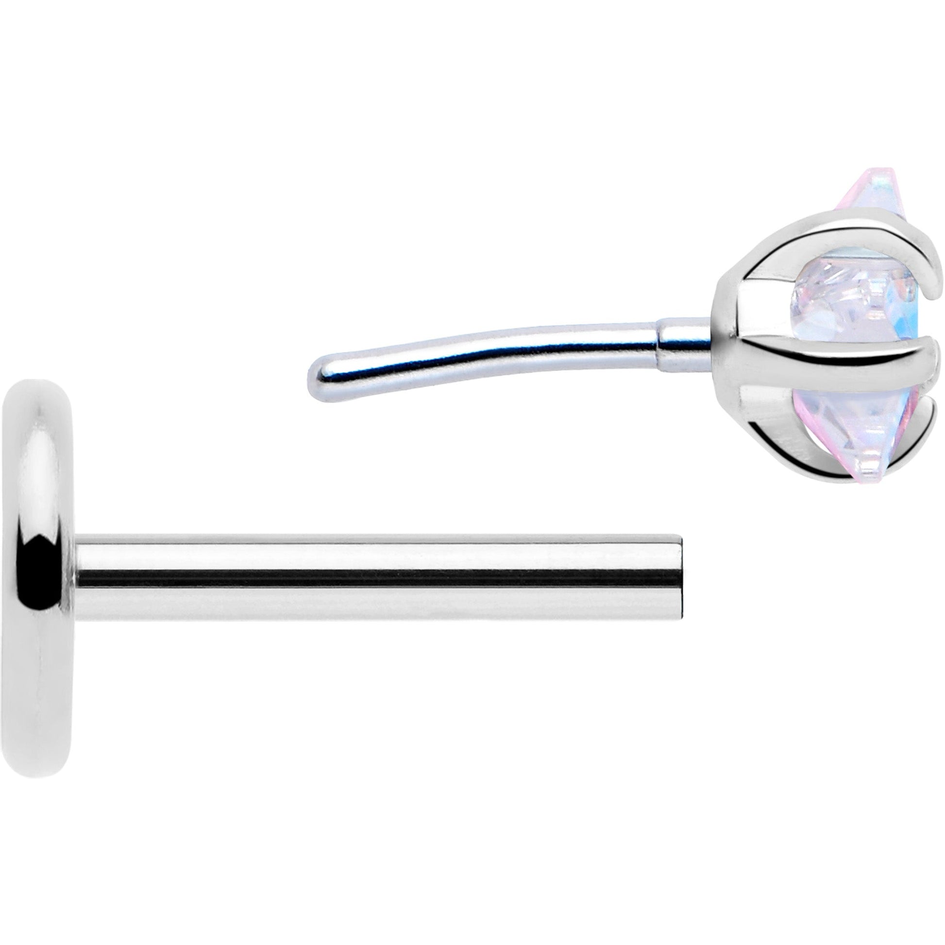 Check out these super comfortable 20 gauge flat back earrings for 24/7 wear.. No need to take these earrings out; keep them in for sleeping and naps. They're made with 6mm durable 316L surgical grade stainless steel straight posts with a flat disc end. They feature 3mm star shaped cubic zirconia gems for a classic look of celestial style. You'll wonder how you lived without this simply heavenly ear piercing jewelry. Sold as a set of two.