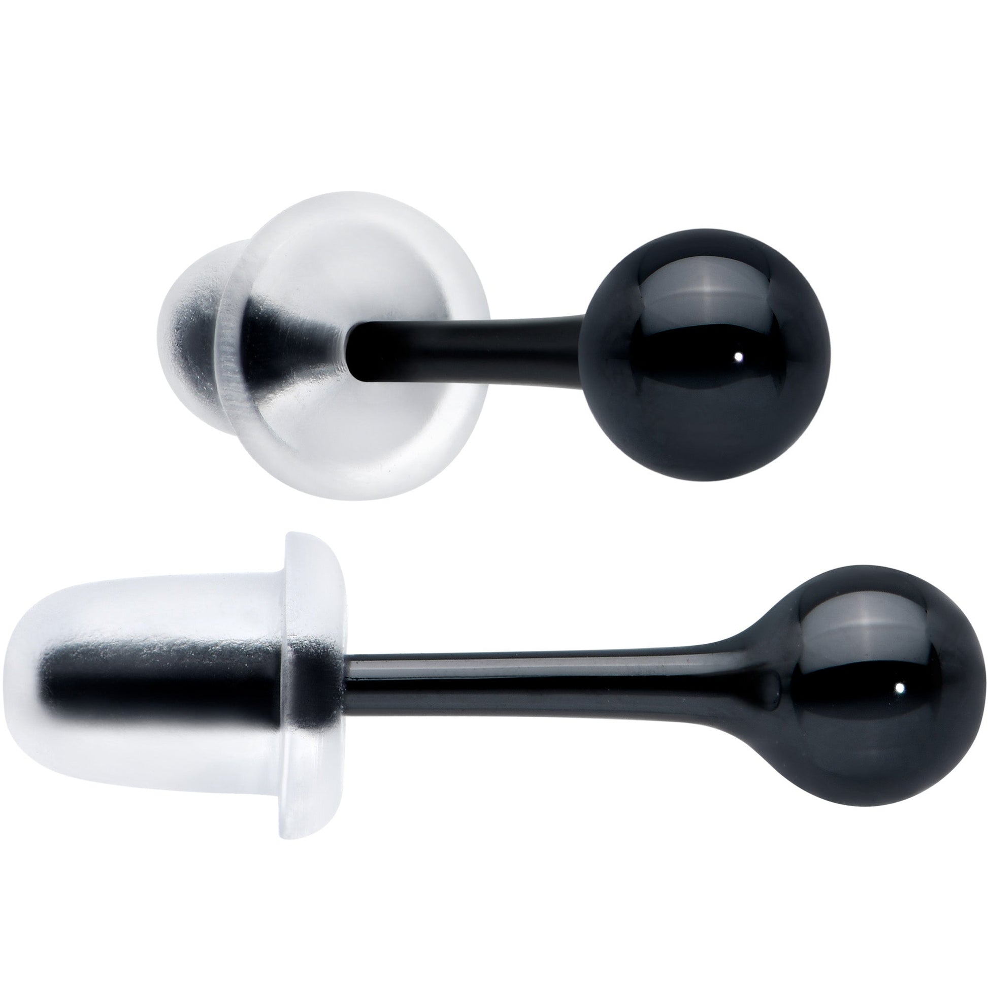 Simple and sweet, a perfect description for these 18 gauge pierced earrings! They're made of black ceramic and feature simple 4mm black ball ends. They also feature clear friction backs so you can feel secure that they're not going anywhere! For a look that goes with every occasion, you can't go wrong with these understated stud earrings. Sold as a set of two.Specifications