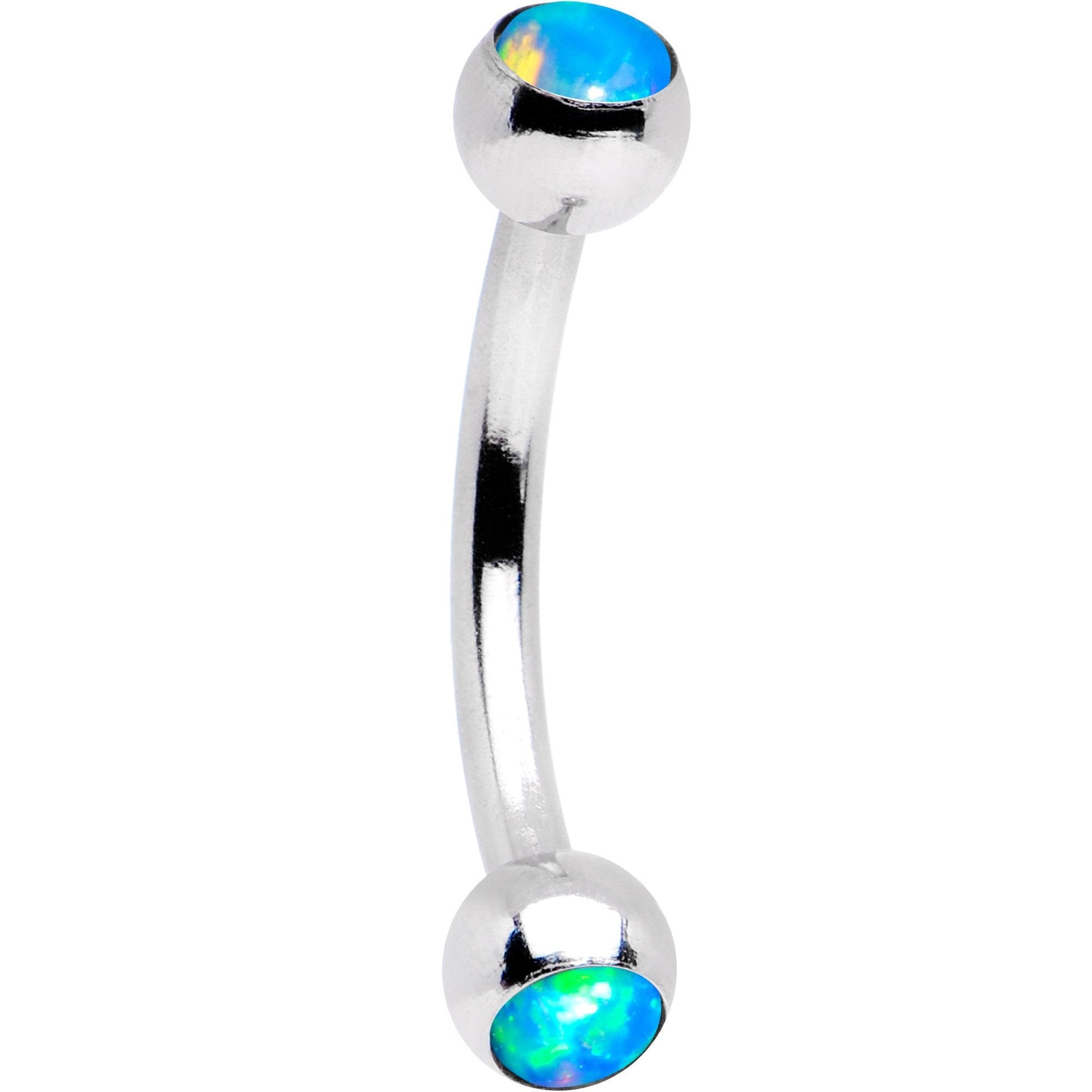 Keep it simple and stylish with this 16 gauge curved eyebrow jewelry. Made with an 8mm durable 316L surgical grade stainless steel curved barbell, this eyebrow piercing features 3mm aqua faux opal inlaid ball ends that will add a touch of fun flair to your body jewelry collection.