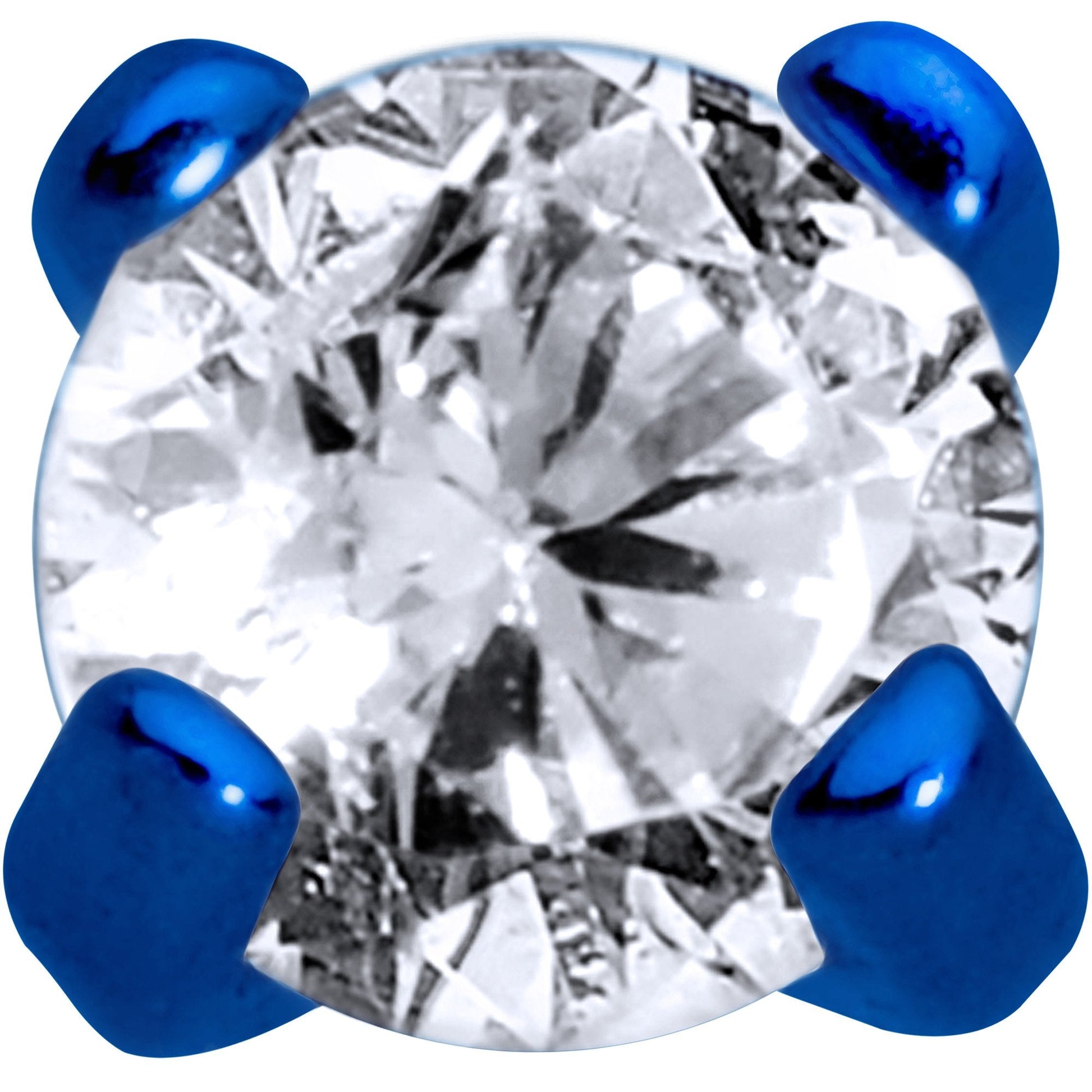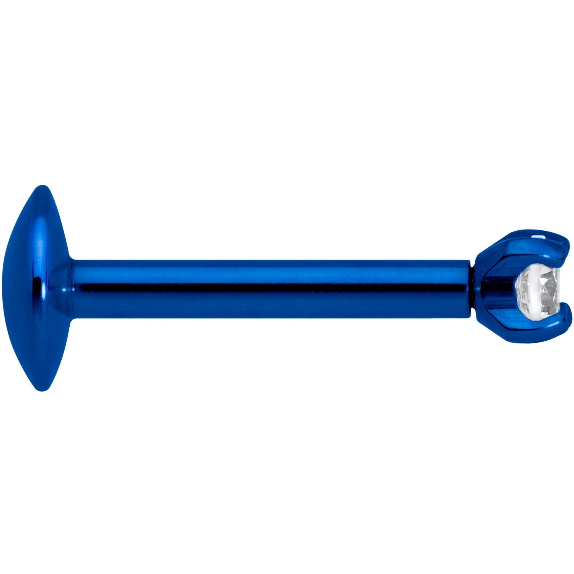 If you love simple yet stylish labret jewelry, then you will love this 16 gauge flat back barbell. Made with a 8mm blue titanium IP over 316L surgical grade stainless steel straight post, this labret piercing features an internally threaded 2mm clear gem end. Features a flat back that is perfect for a labret, monroe piercing, or even a cartilage piercing.Specifications