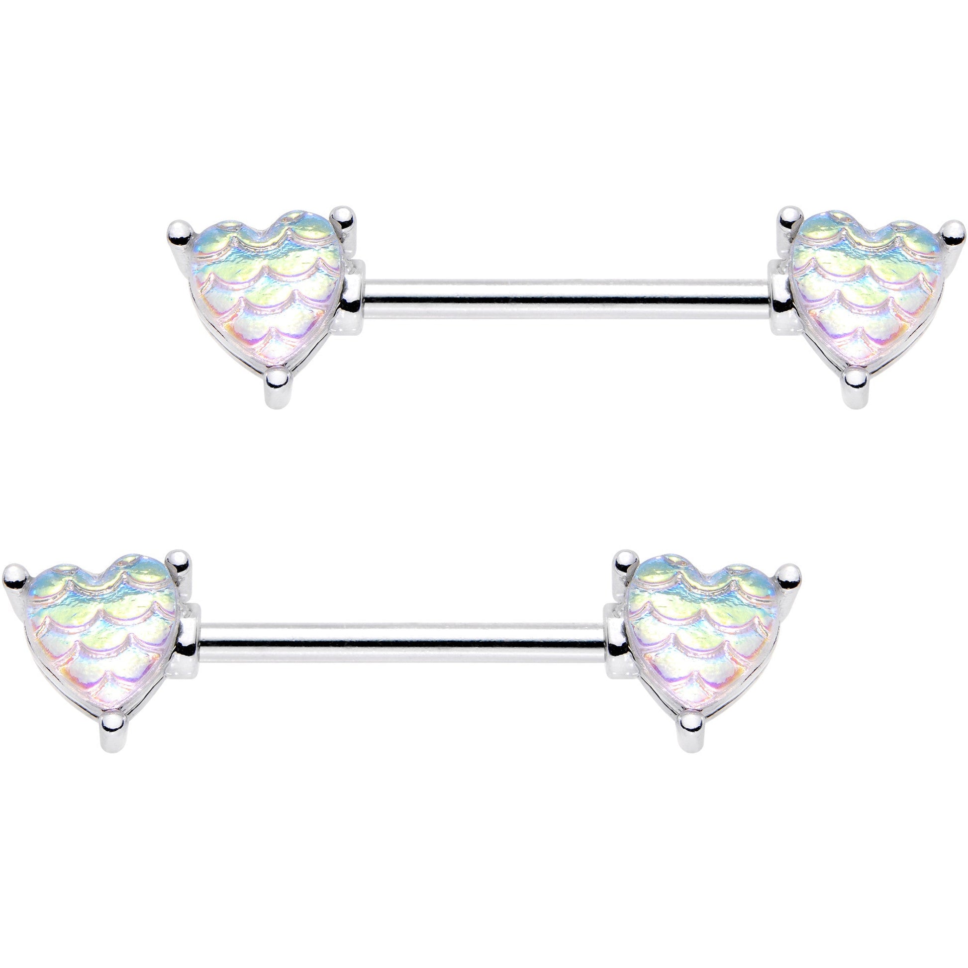 5/8" Iridescent White Mermaid Scale Heart Barbell Nipple Ring Set