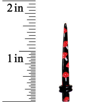 Hypoallergenic jewelry for sensitive skin.4mm ear taper. This black acrylic ear plug features red and white mushrooms. Mushroom ear expender featuring two rubber O-rings. Body piercing ear taper sold individually.