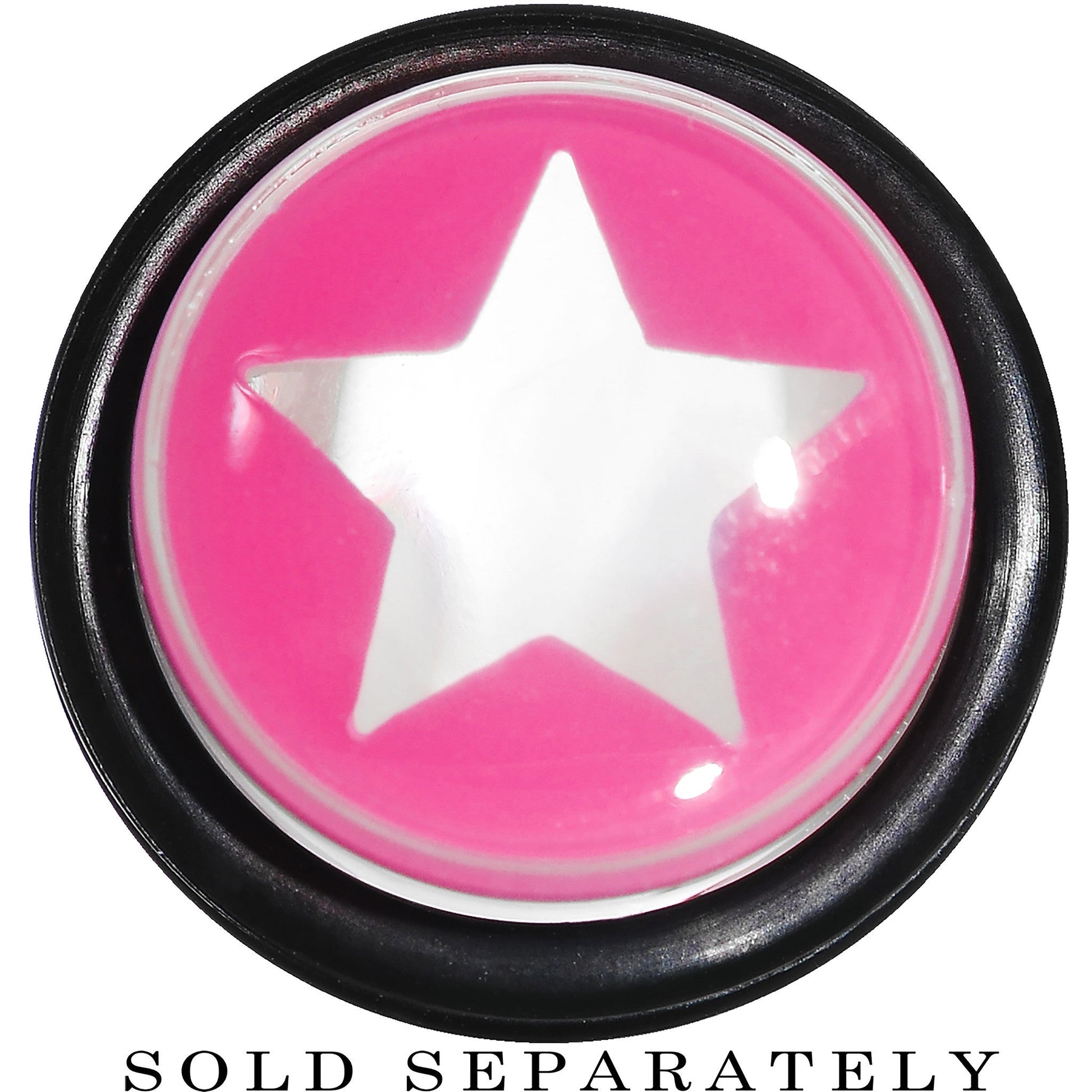 Hypoallergenic jewelry for sensitive skin.Item sold individually, purchase two for a pair. Always have a wish on hand when you wear this star acrylic ear expander taper plug. The solid clear acrylic 14mm ear stretcher is topped with pink and a clear star at the center. Pierced body jewelry straight taper ear gauge plug comes with two rubber O-rings.