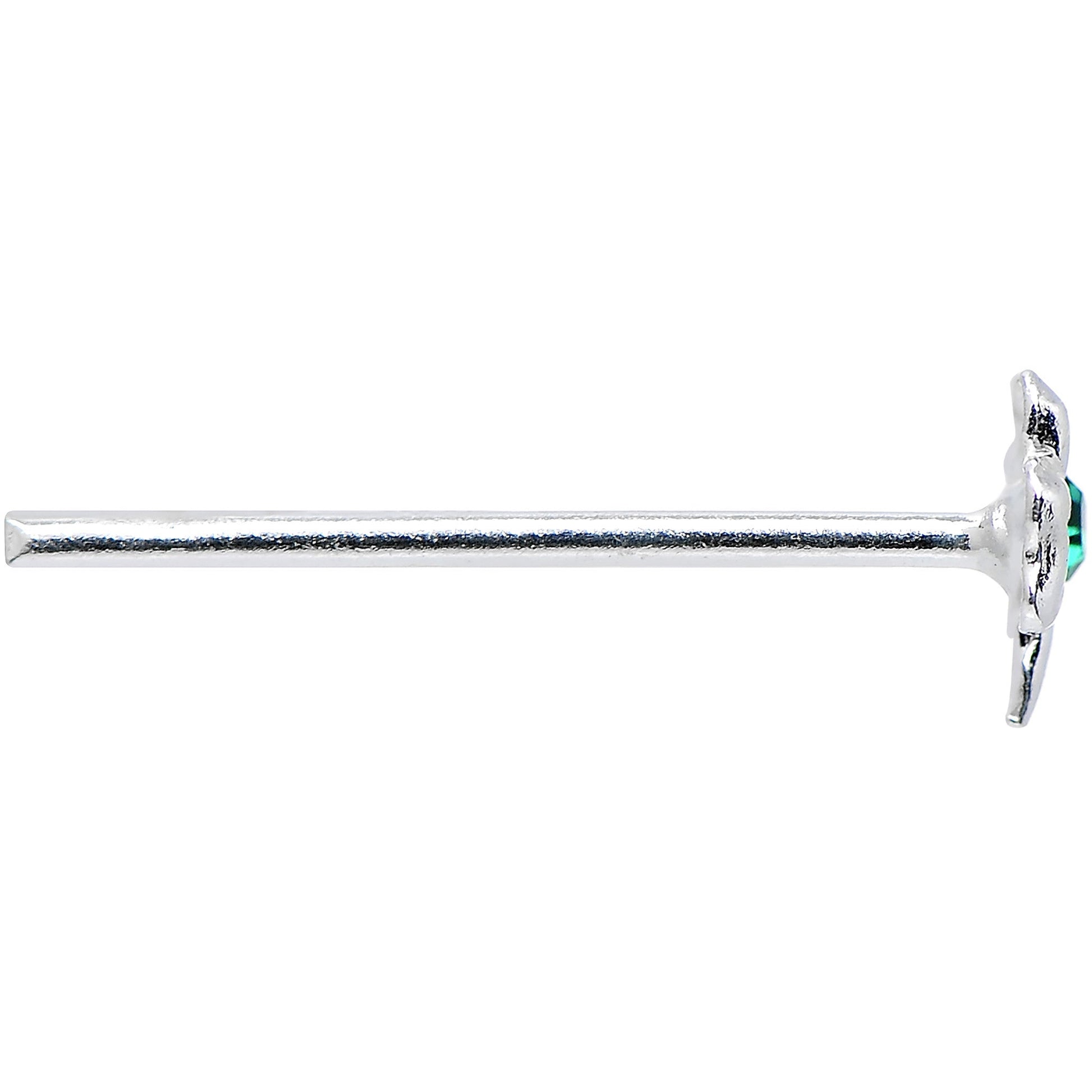 925 Sterling Silver 22G Green CZ Shamrock Bendable Nose Bone