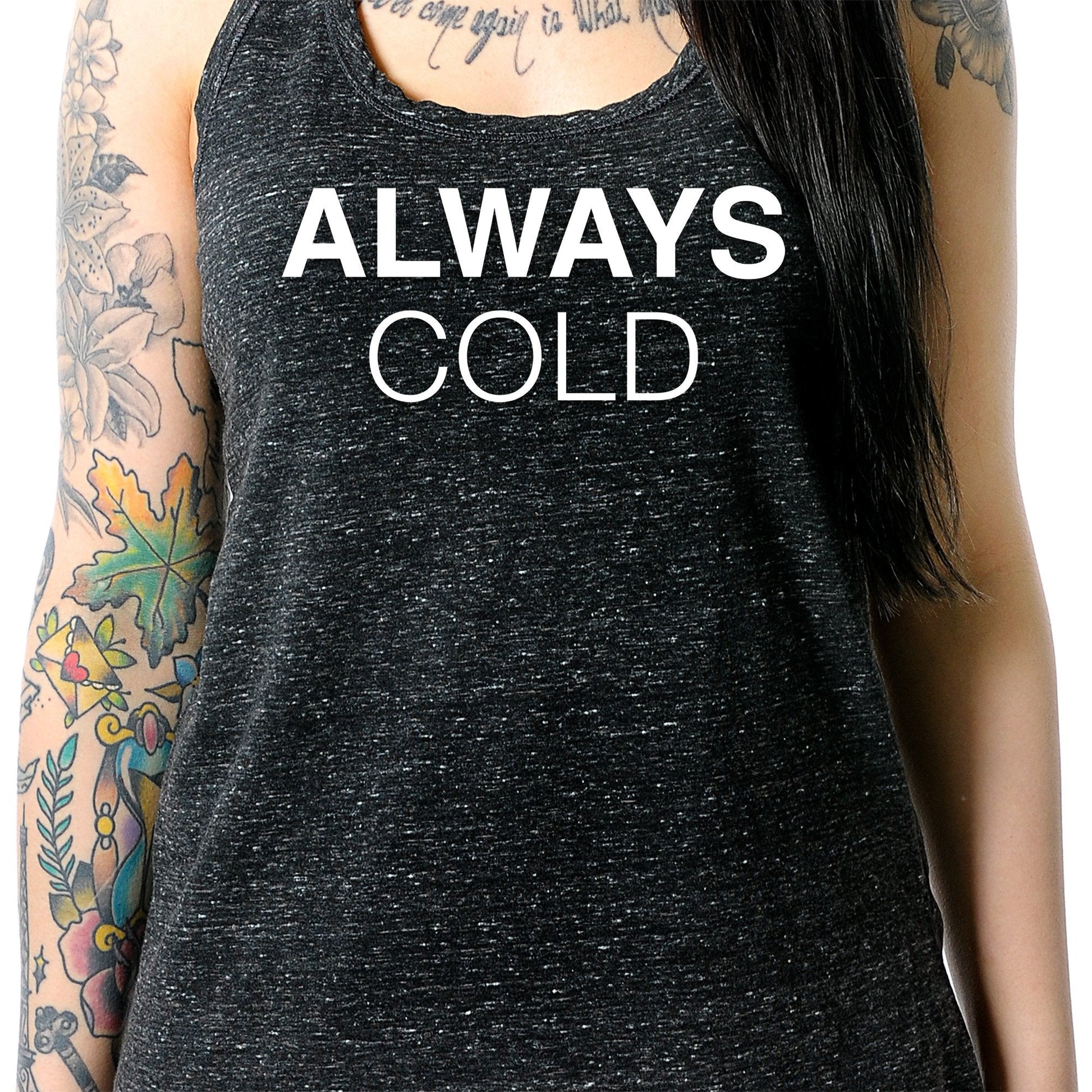 Always Cold Black Gray Cosmic Twist Back Tank Top