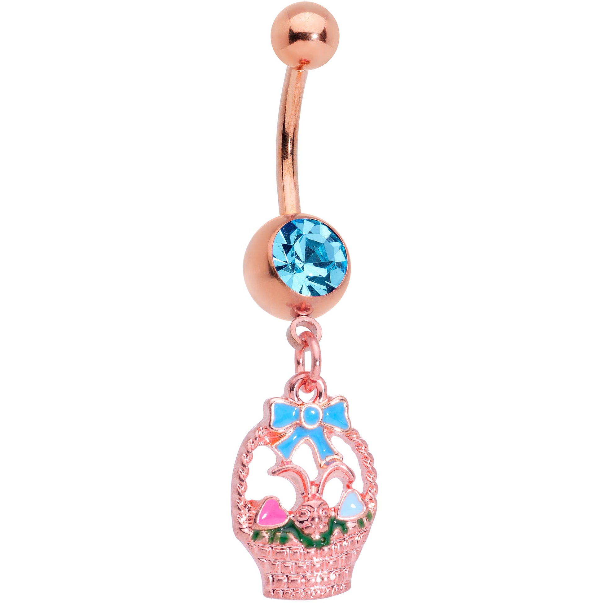Aqua Gem Rose Gold Tone Easter Basket Dangle Belly Ring