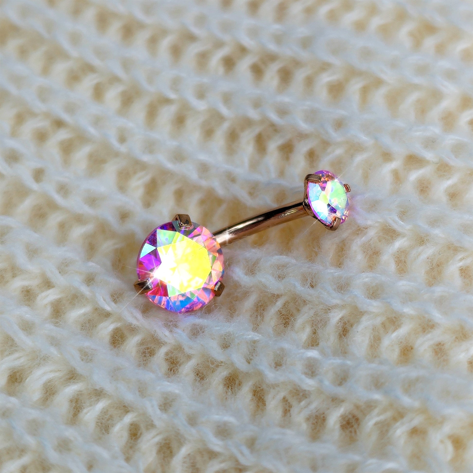 Aurora CZ Gem Rose Gold Tone Top Internally Threaded Belly Ring