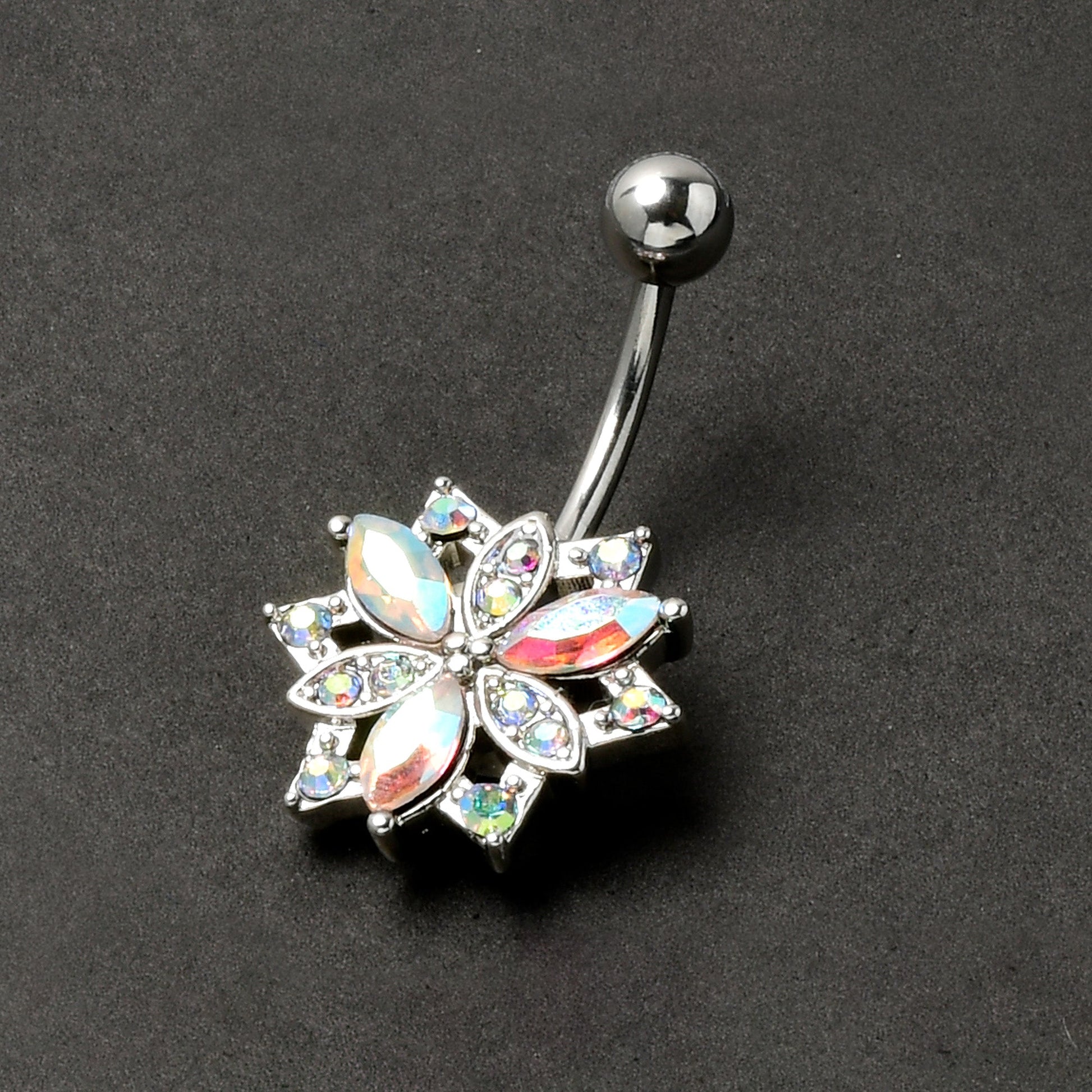 Aurora CZ Gem Snowflake Style Belly Ring