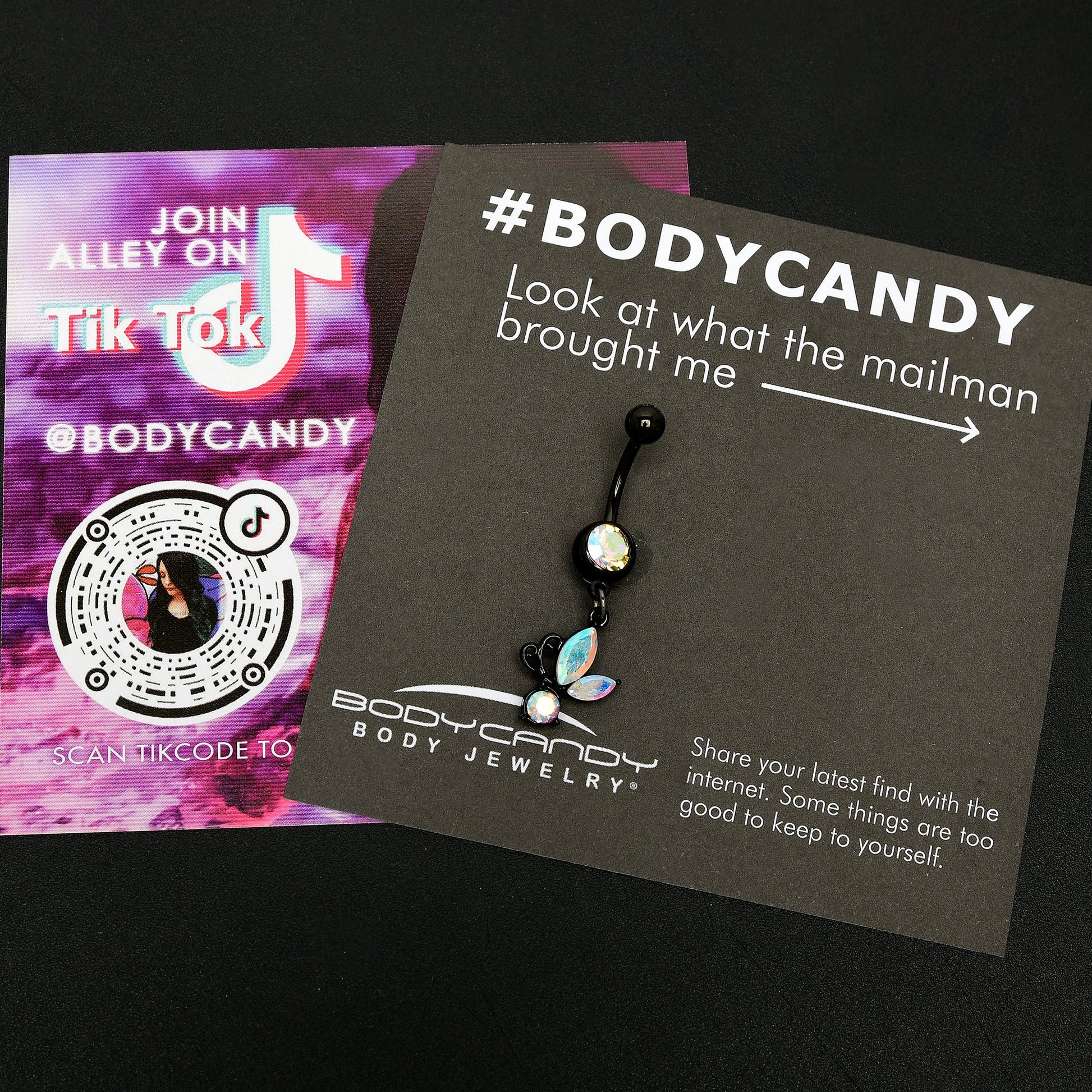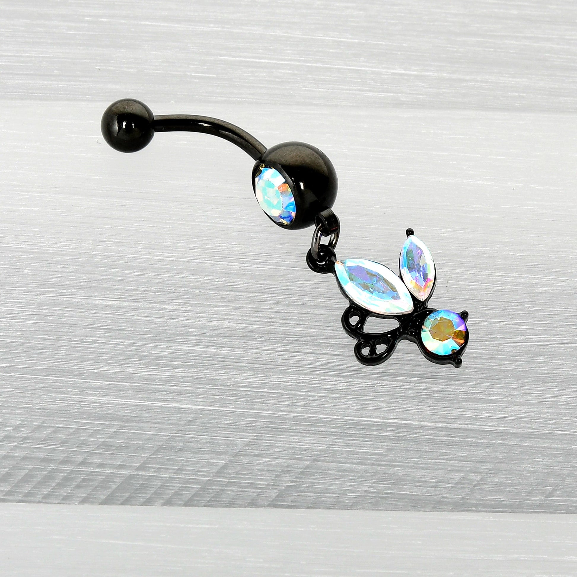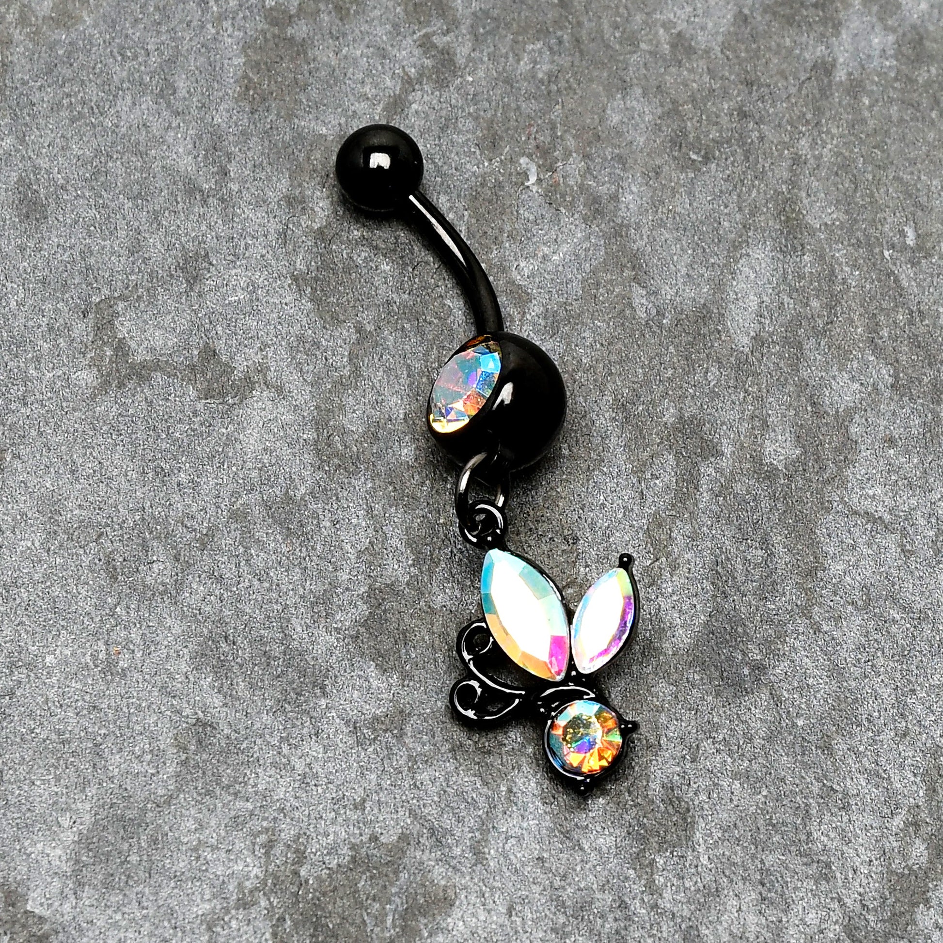 Aurora Gem Black Fleur de Lis Butterfly Dangle Belly Ring