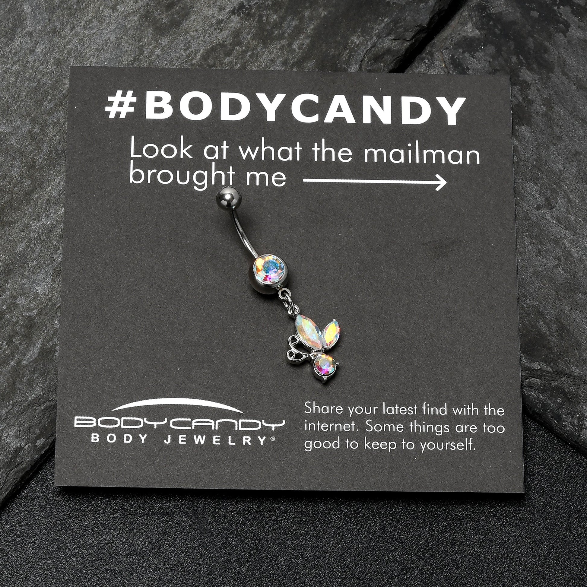 Aurora Gem Fleur de Lis Butterfly Dangle Belly Ring