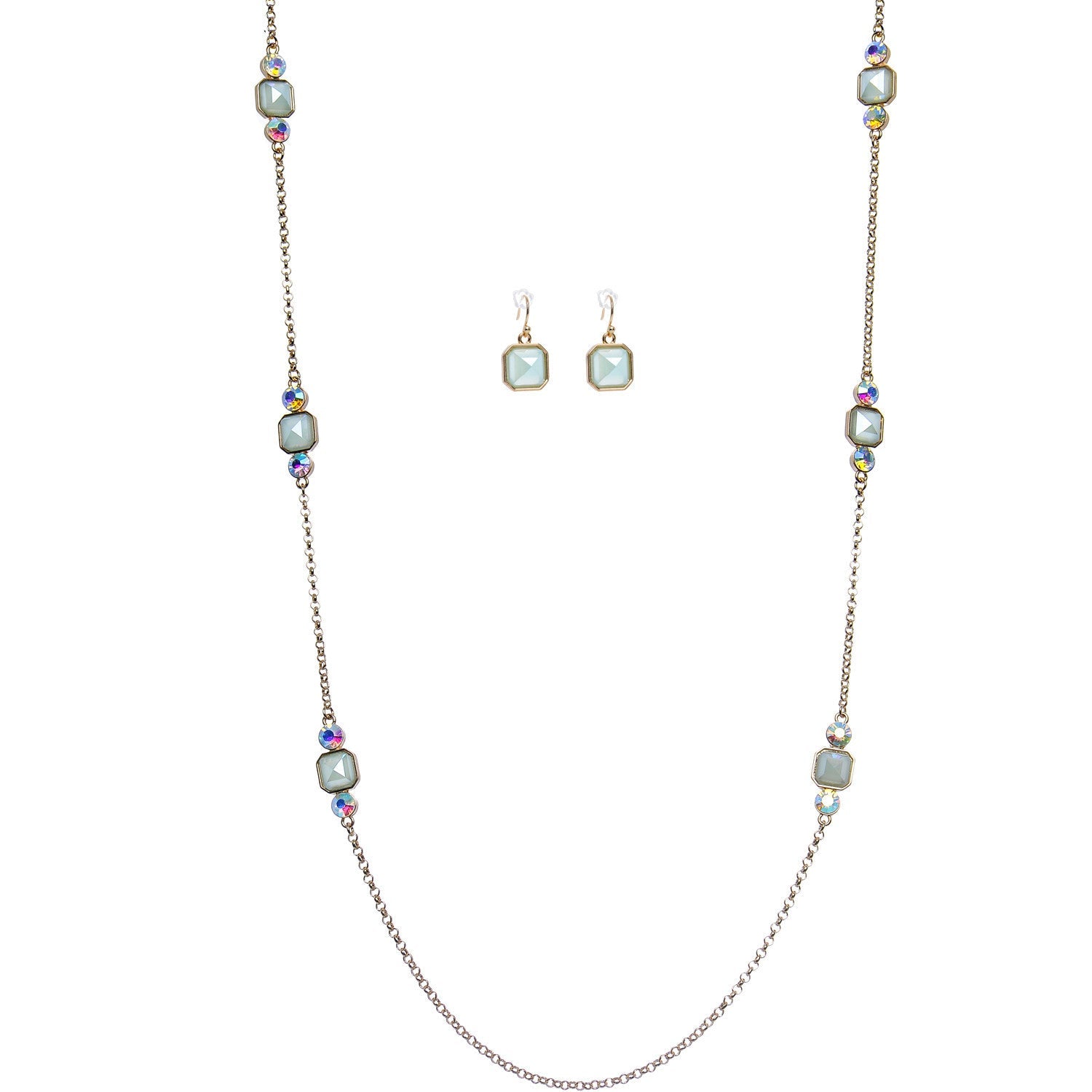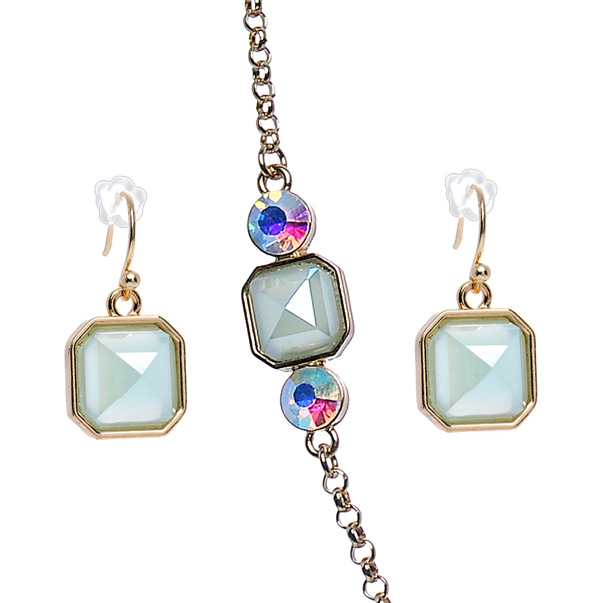 Aurora Gem Mint Green Octagon Faux Stone Dangle Earrings Necklace Set