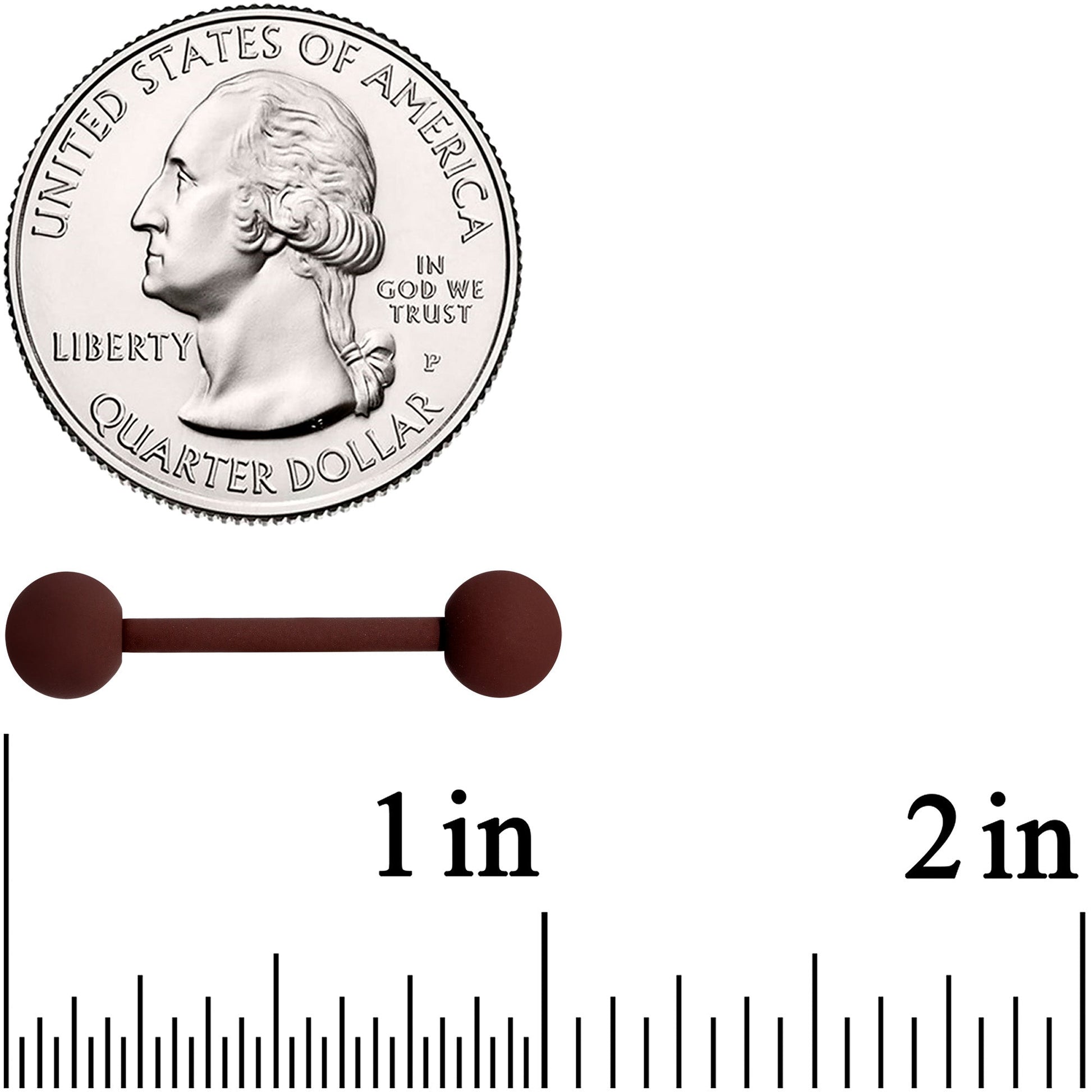 Let your words shine while your tongue piercing stays subtle with this 14 gauge tongue piercing jewelry! It's made with a 5/8" dark brown matte plated over 316L surgical grade stainless steel straight barbell. It features 5mm matching acrylic ball ends for a cohesive look. If you want to add a bit of color to your tongue piercing but prefer a more understated appearance, this beautiful brown tongue jewelry is sure please.Specifications