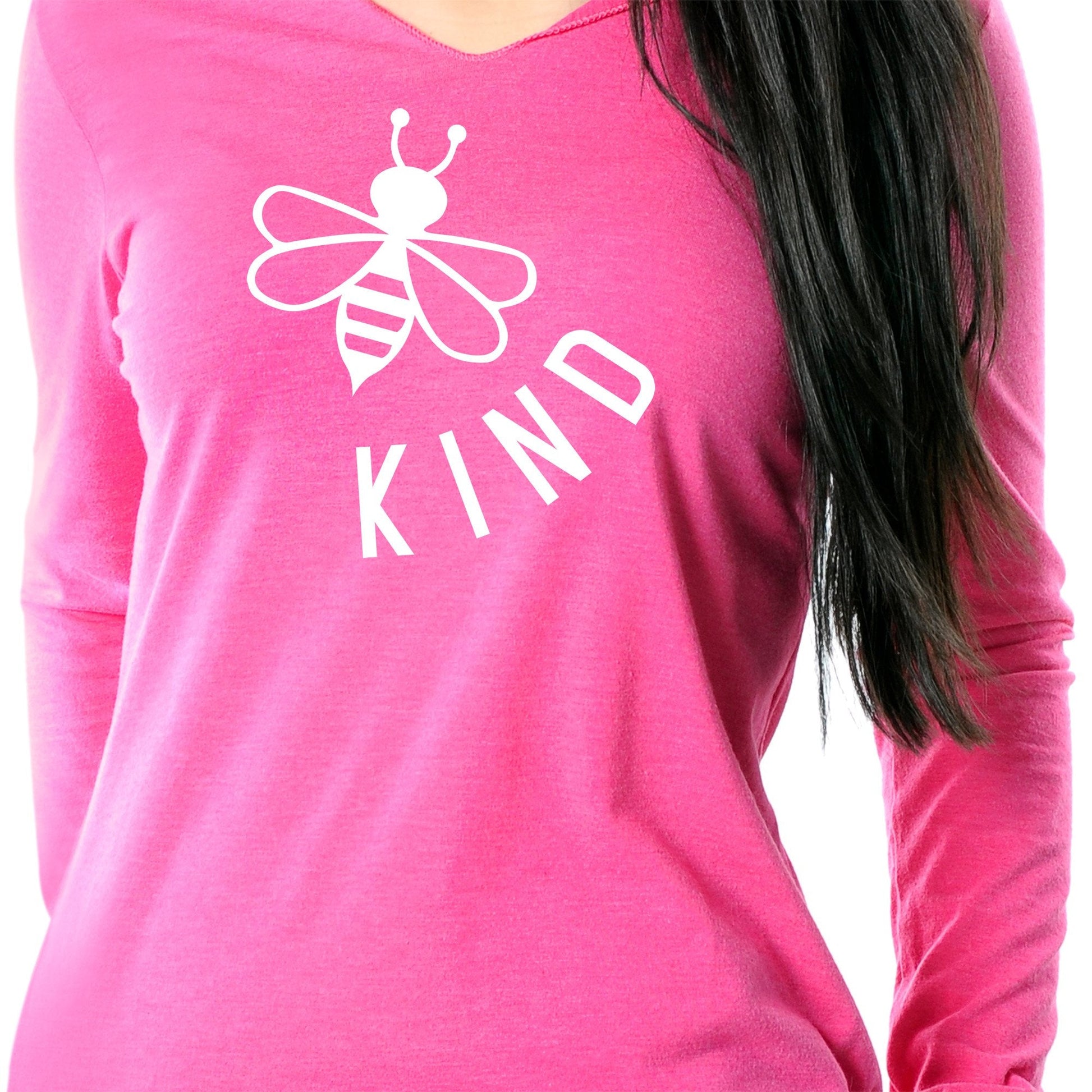 Let the world know that being kind is the bee's knees whenever you wear Body Candy's 50/25/25 poly/ring spun combed cotton and rayon "Bee Kind" v-neck hoodie. This soft and comfortable hoodie features shoulder to shoulder taping, a split v-neck with raw edge, and has a fitted style and is lightweight that is the perfect fusion of lightweight comfort and carefree style, combined into this fashionable pullover hoodie for women. The tri-blend fabric features colors that have a unique character and may have subtle variations in color.