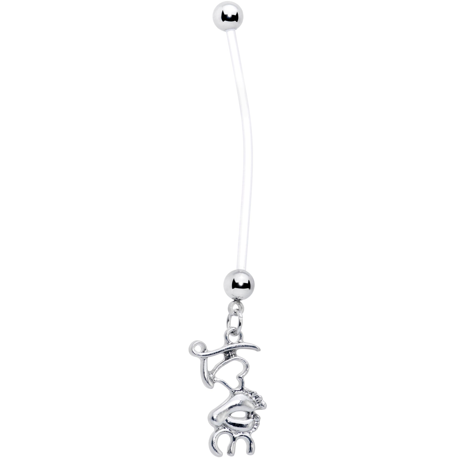 Hypoallergenic jewelry for sensitive skinBioplast PTFE Love Little Baby Feet Dangle Pregnancy Belly Ring