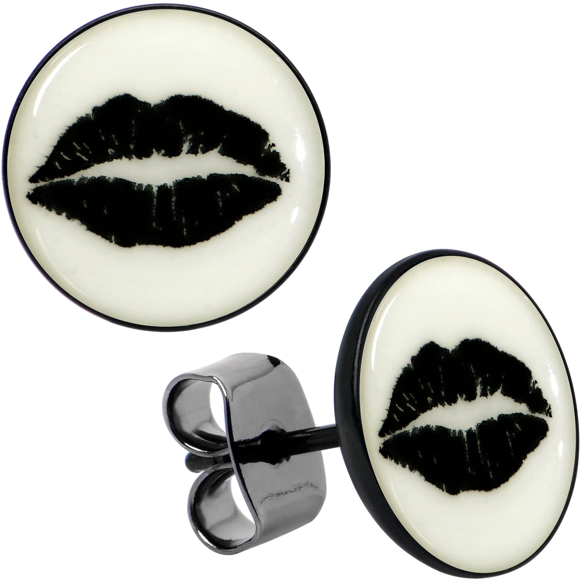 Hypoallergenic jewelry for sensitive skin.Black Anodized Steel Lipstick Kiss Mark Glow in the Dark Stud Earrings