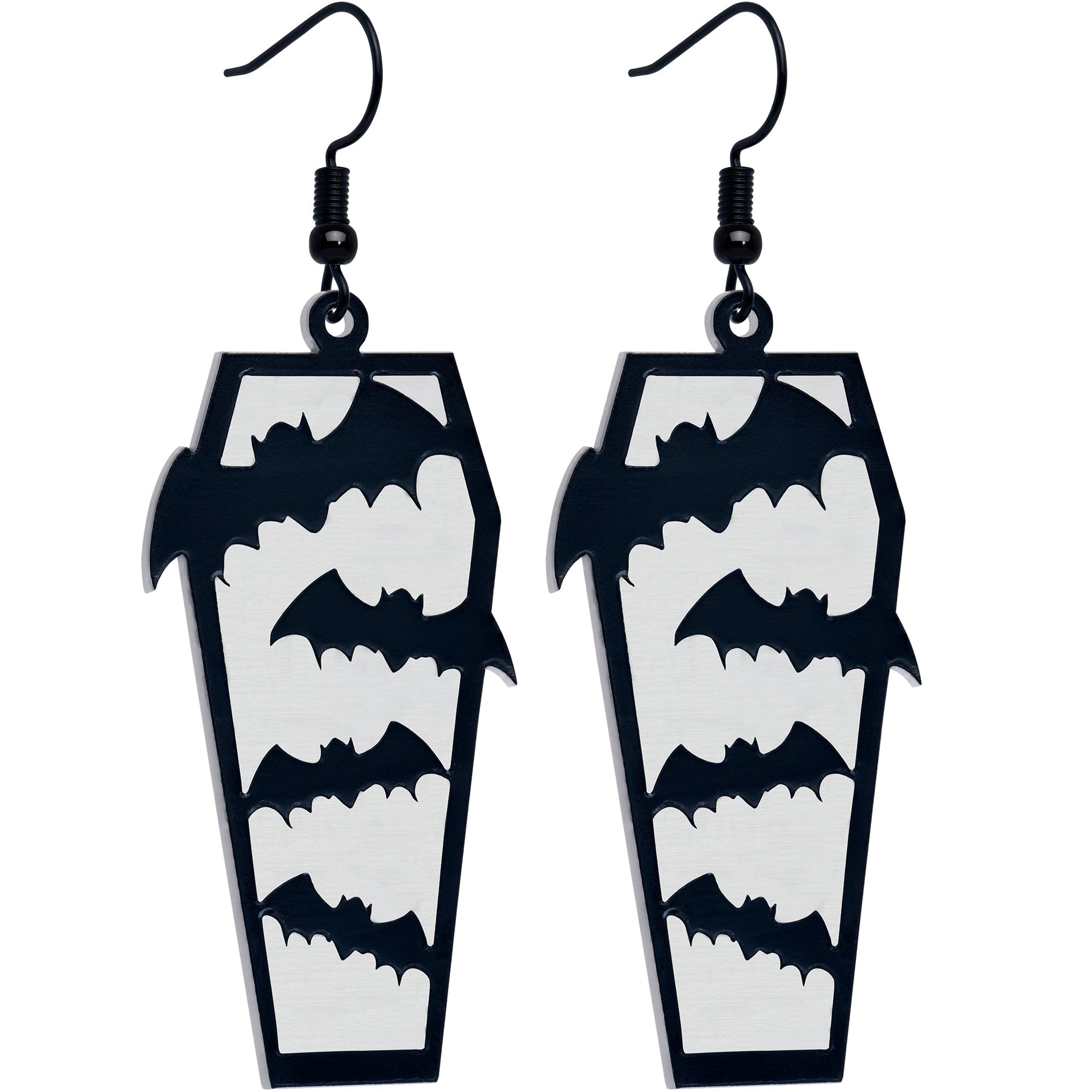 Black Bat Coffin Glow in the Dark Dangle Earrings by Onyx O