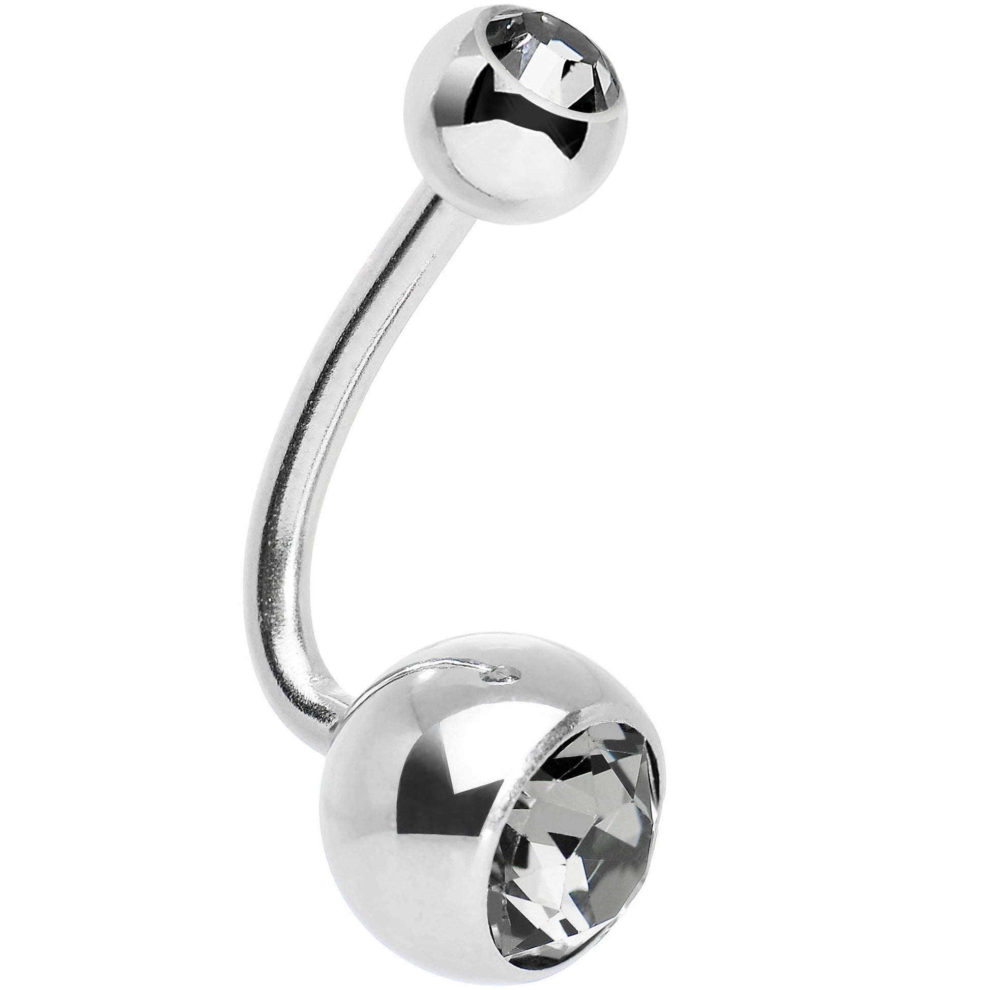 Make a simple and stylish addition to your pierced body jewelry collection with this J-bar navel ring featuring a unique barbell design with double black diamond crystal. J-curve barbell pierced belly button ring body jewelry created with crystals.