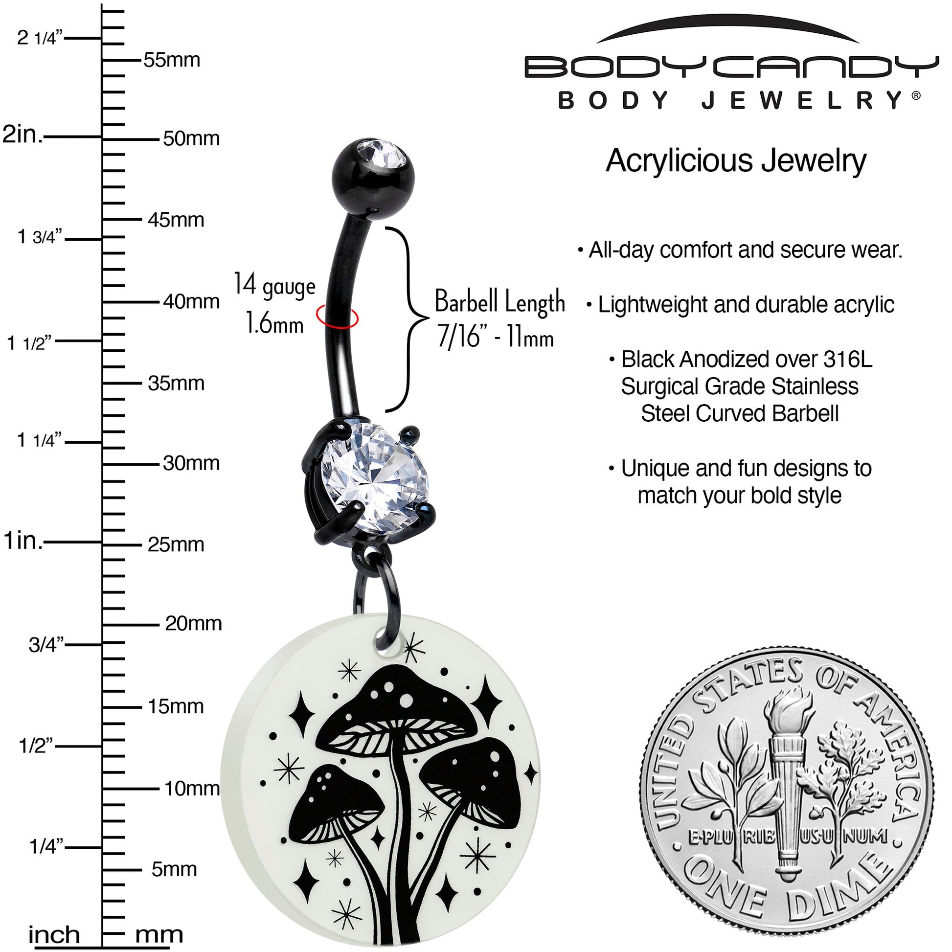 Black Double Gem Glow in the Dark Mystic Mushroom Dangle Belly Ring by Onyx O