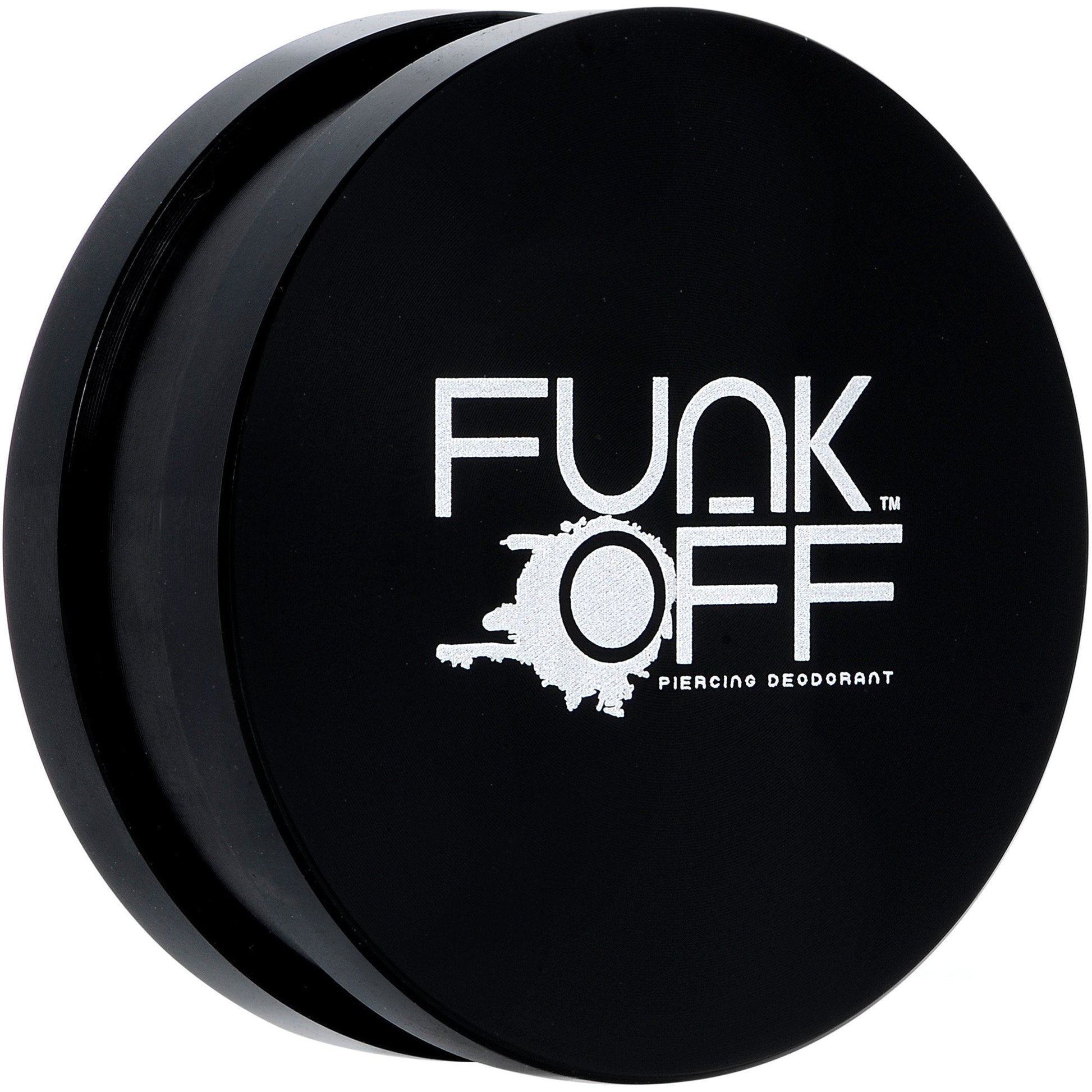 If you're in a funk because of some funky-smelling body piercings, shake it off with Funk-Off Piercing Deodorant, an all natural product created from plant fats and botanical oils. The combination of these ingredients has been proven to be effective in neutralizing the odor commonly associated with body piercing and stretched earlobes. The 1/4" tin is long-lasting, easy to use, and extremely effective with proper application. It's also packaged perfectly to carry in a pocket, purse, or backpack - and fashionable as well! Please use only on healed piercings.