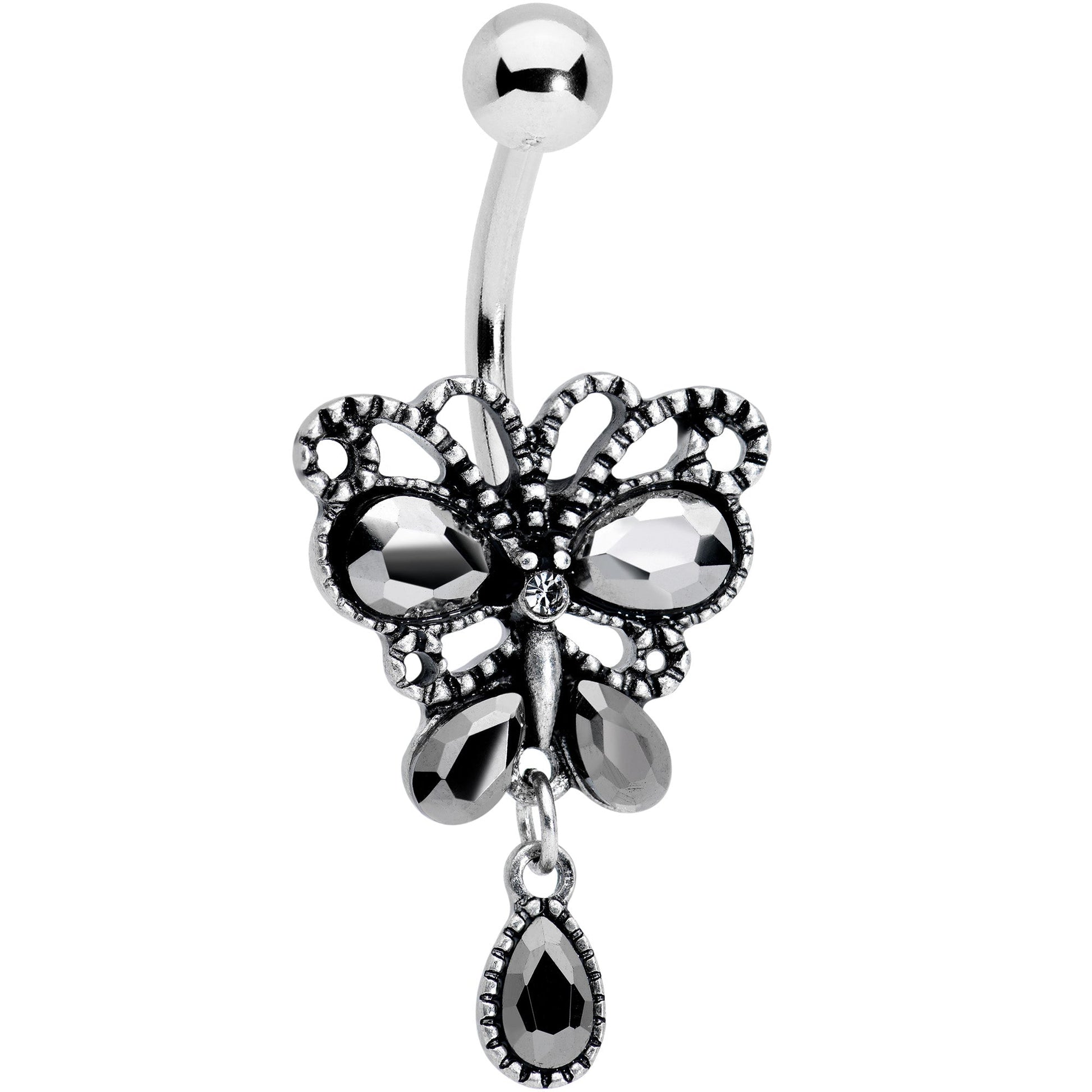 Black Gem Abstract Bow Dangle Belly Ring