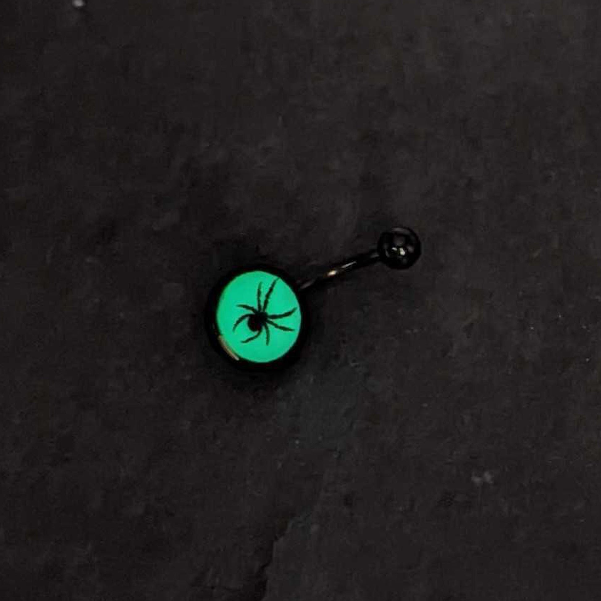 Black Glow in the Dark Black Widow Spider Belly Ring by Onyx O