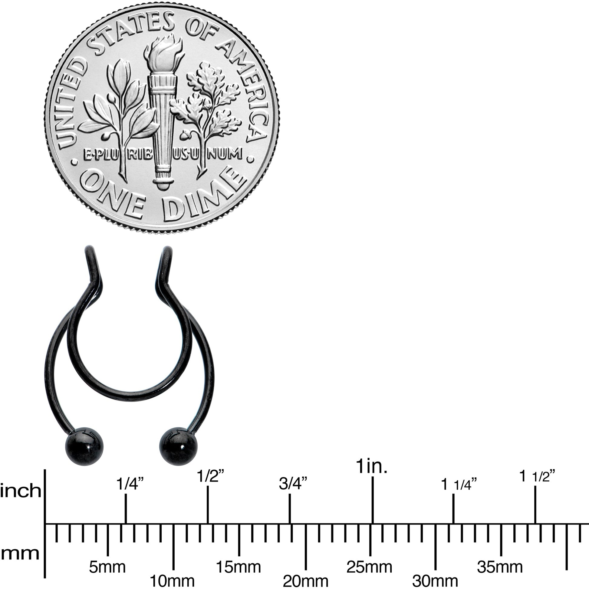 Black Horseshoe Ball Fake Septum Ring Nipple and Clip on Earring