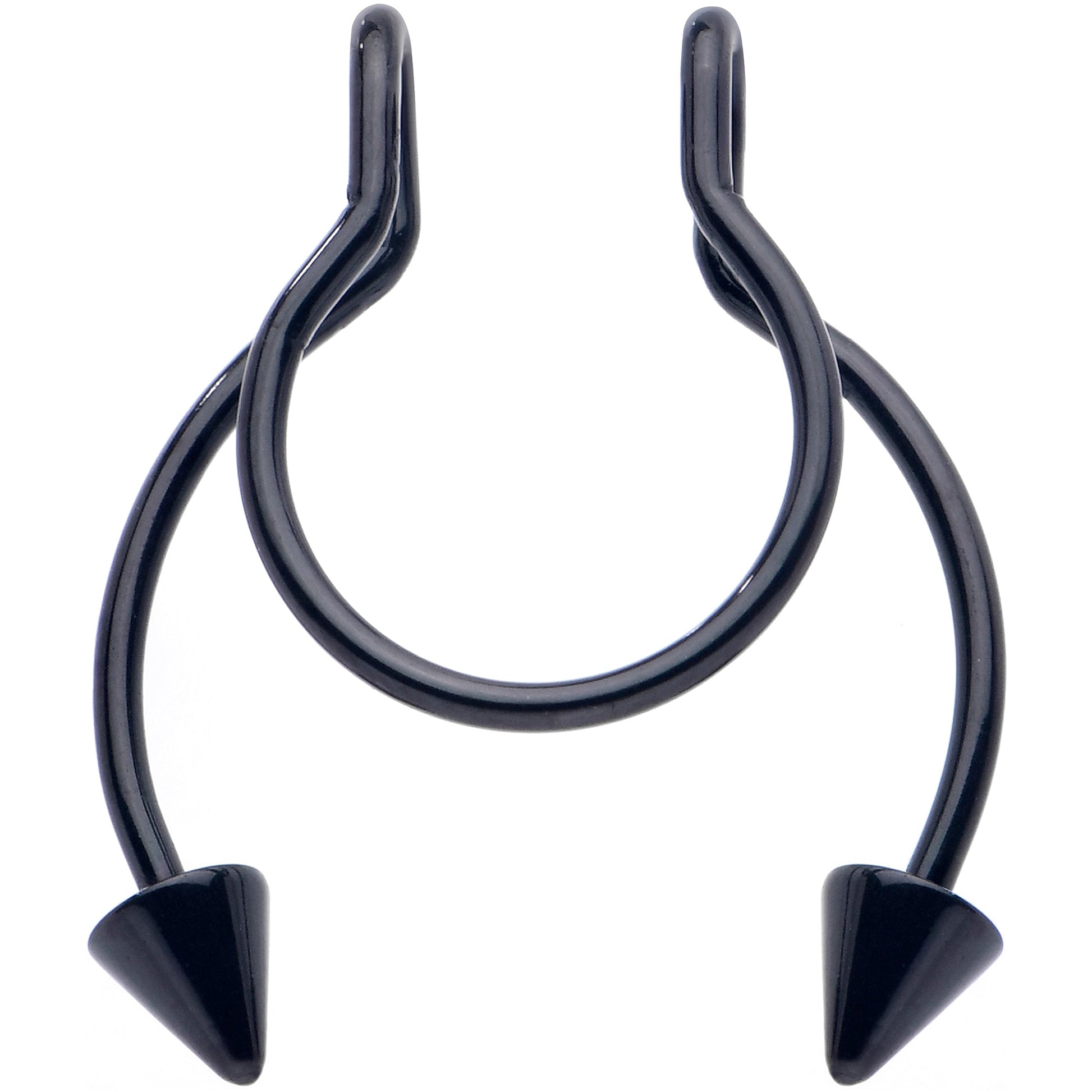 Black Horseshoe Cone Barbell Fake Nose Ring Nipple and Clip on Earring