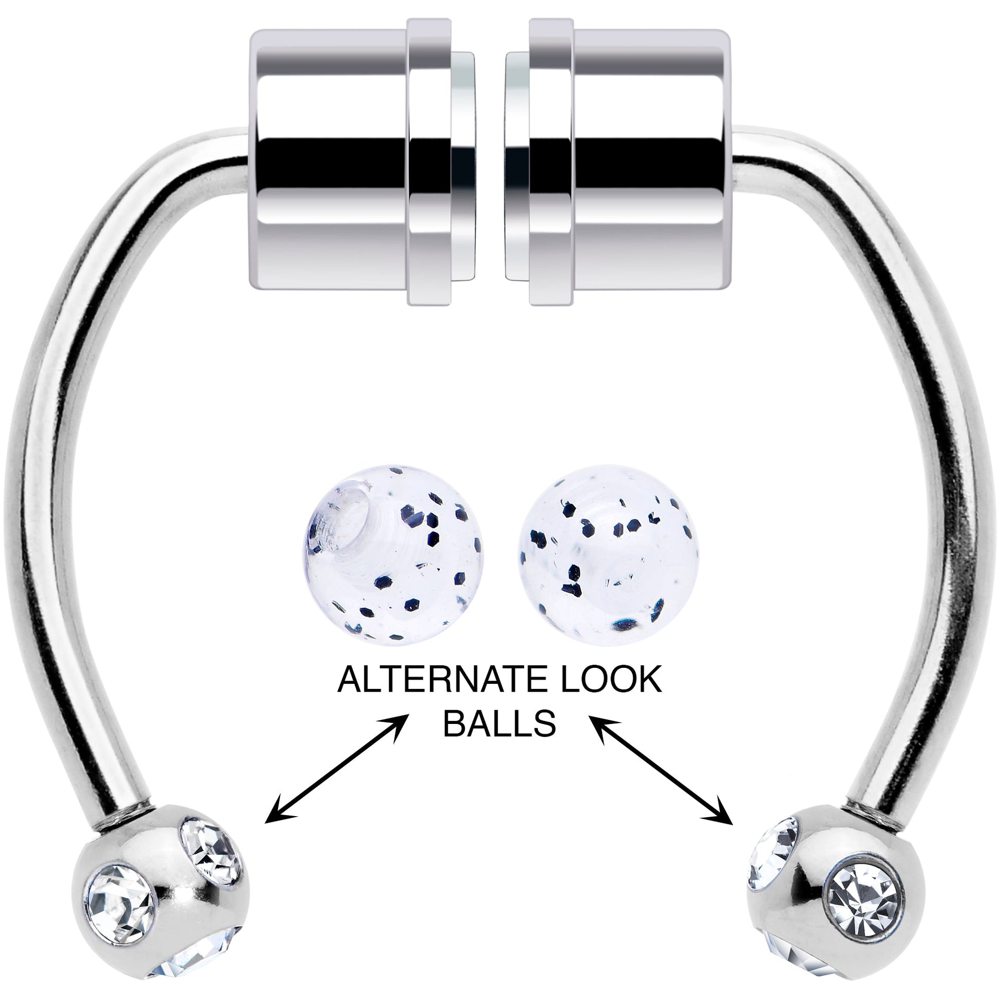 16 Gauge Barbell, 10mm Diameter, Stainless Steel, One Size Fits Most, Non-Pierced, Magnetic Closure, Cubic Zirconia