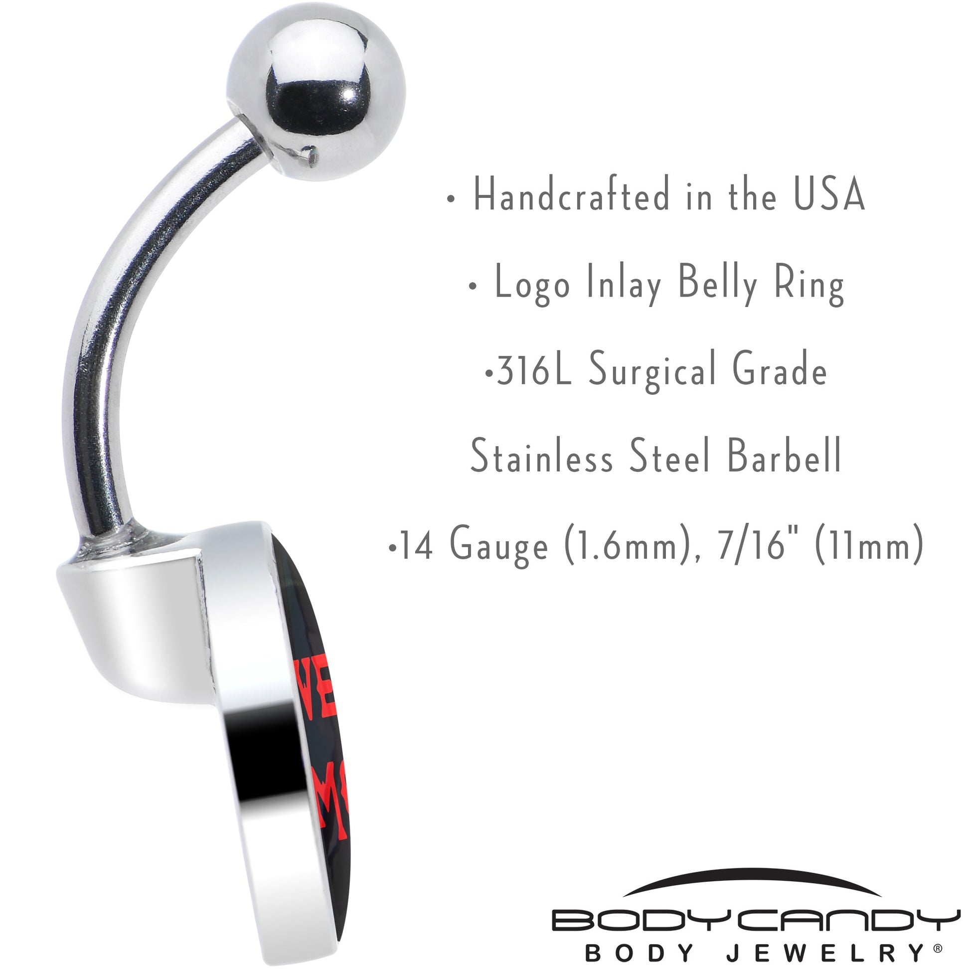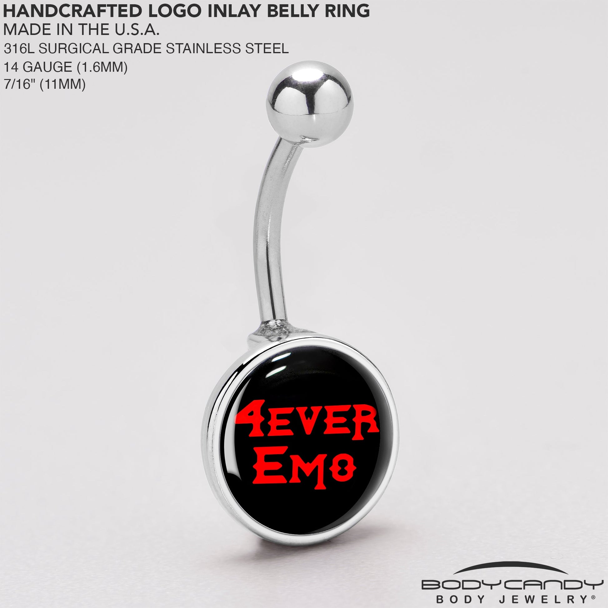 If you're emo and you love it, show it off with this 14 gauge navel ring. It's made with a 7/16 inch 316L surgical grade stainless steel curved barbell with a 5mm top ball end. The bottom end features a black disc logo charm with 4ever emo written in stylized red letters for some serious visual impact. It's not just a phase when you're rocking this delightfully dark belly piercing jewelry.