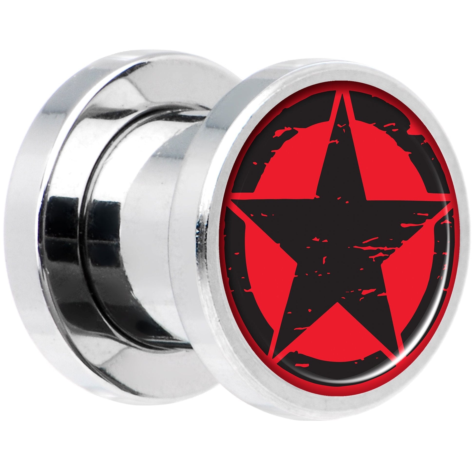 Black Red Distressed Star Steel Screw Fit Plug Set 0 Gauge