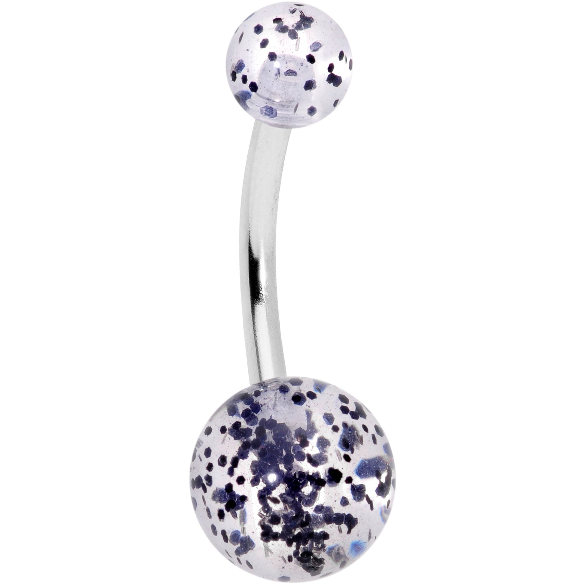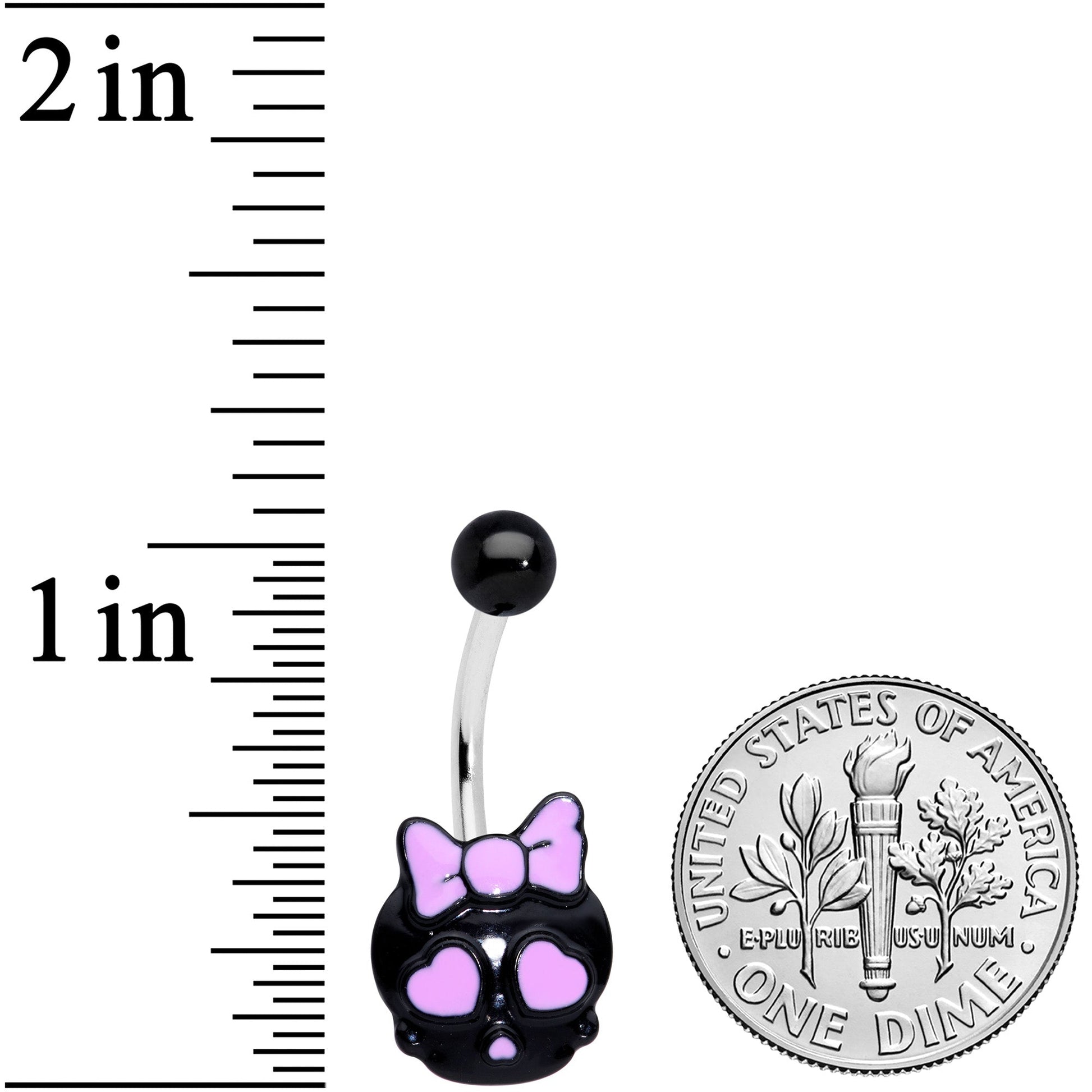 Get a complete creepy-cute wardrobe for your belly piercing with this set of 14 gauge navel ring! The first three are made with 7/16" durable 316L surgical grade stainless steel curved barbells. One features a 5mm black top ball end and a bottom end of a black skull charm with a pink bow and pink heart-shaped eyes. The second features a 5mm top ball end and an 8mm bottom ball end set with a pink faux opal. The third features a 5mm and 8mm clear acrylic set with black glitter bottom ball end that react to UV light by glowing! The fourth is made with a 7/16" black plated over 316L surgical grade stainless steel curved barbell with a 5mm top ball end and an 8mm bottom ball end. Both ball ends are matching black for a simple look that goes with everything! Give your navel piercing a little bit of everything with this spooky-sweet set of belly button rings! Sold as a set of four.Specifications