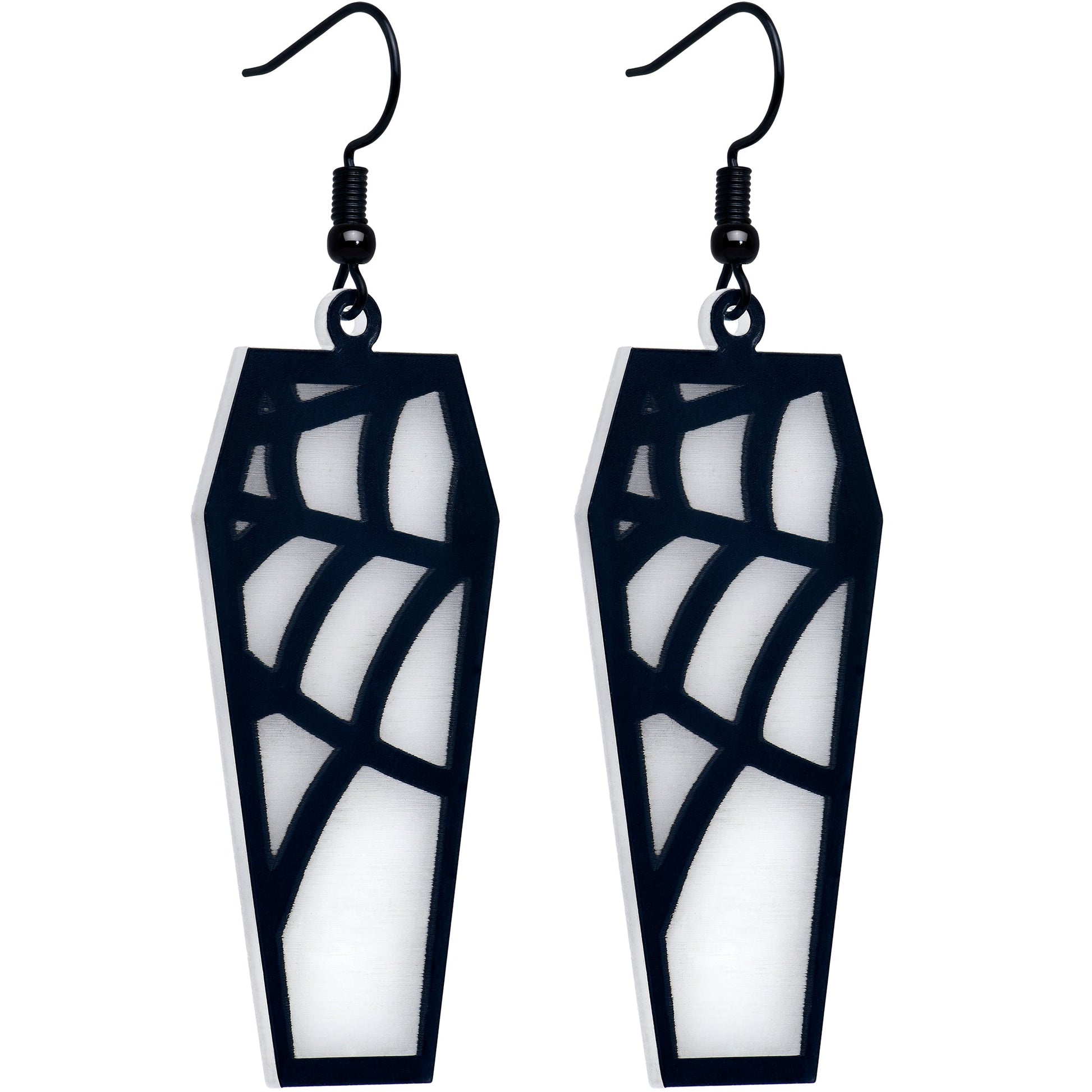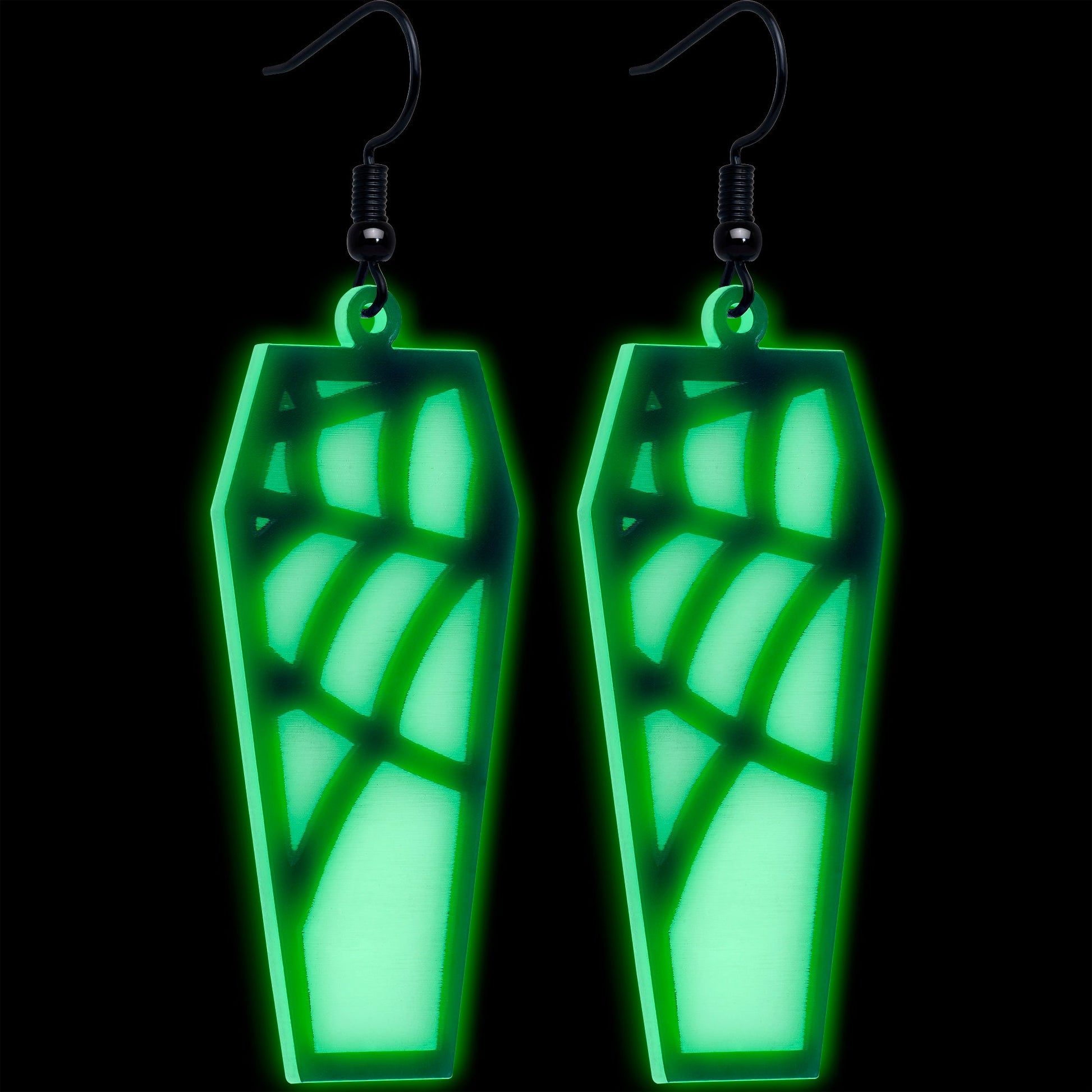 Black Spider Web Coffin Glow in the Dark Dangle Earrings by Onyx O