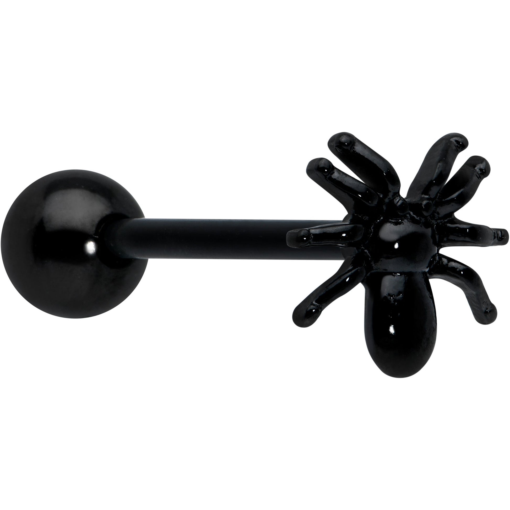 Black Titanium Anodized 3-D Spider Barbell Tongue Ring