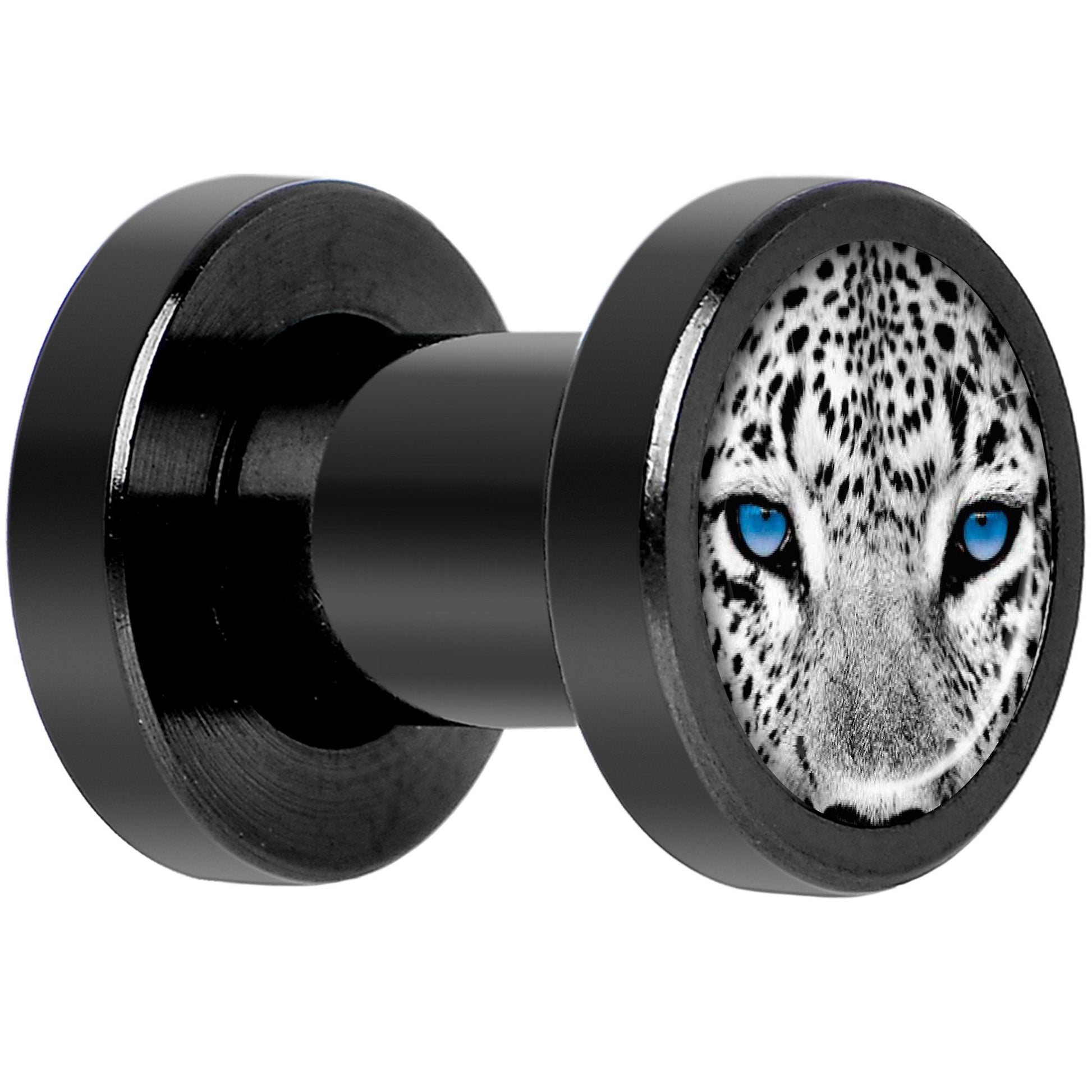 Black White Leopard Eyes Black Anodized Screw Fit Plug Set 4 Gauge