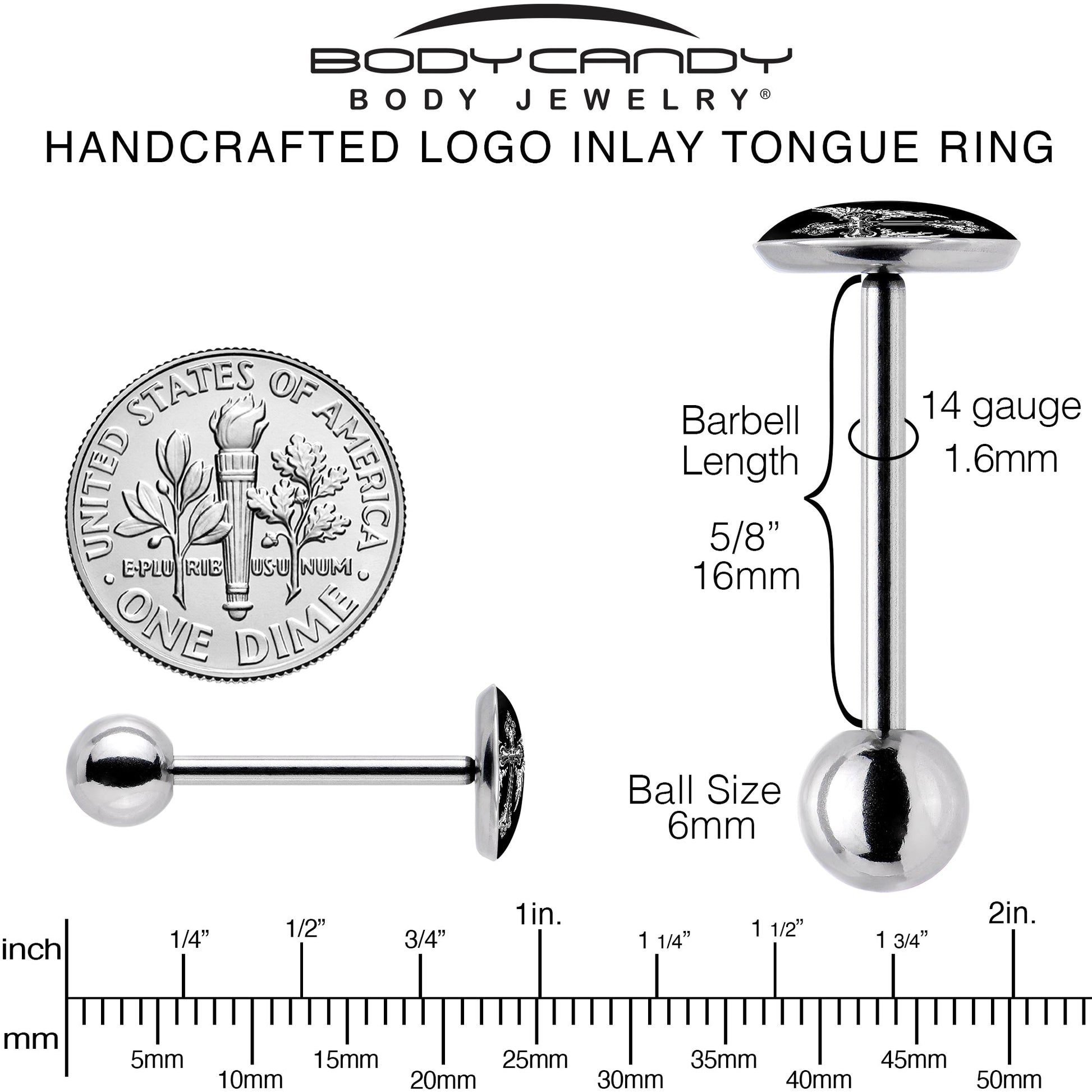 14 Gauge (1.6mm), 5/8" (16mm), 9mm Logo Inlay, 316L Surgical Grade Stainless Steel, 6mm BallCouldn't load pickup availability