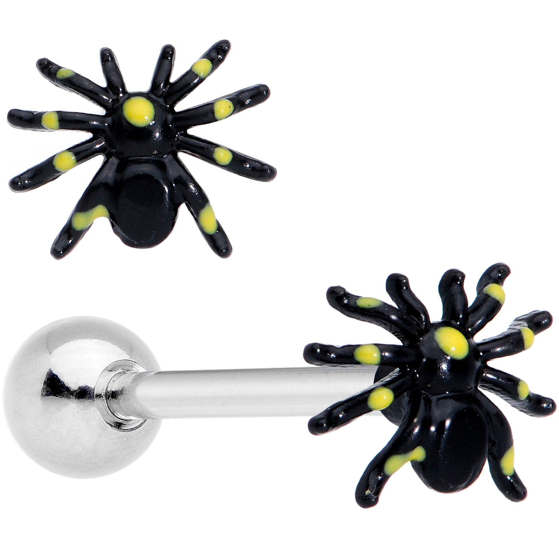 Black Yellow Spooky Spider Halloween Barbell Tongue Ring