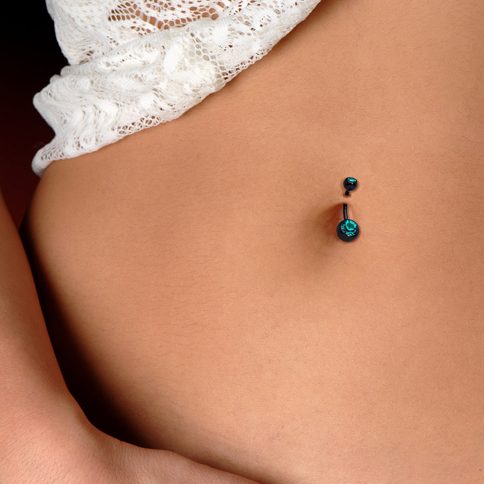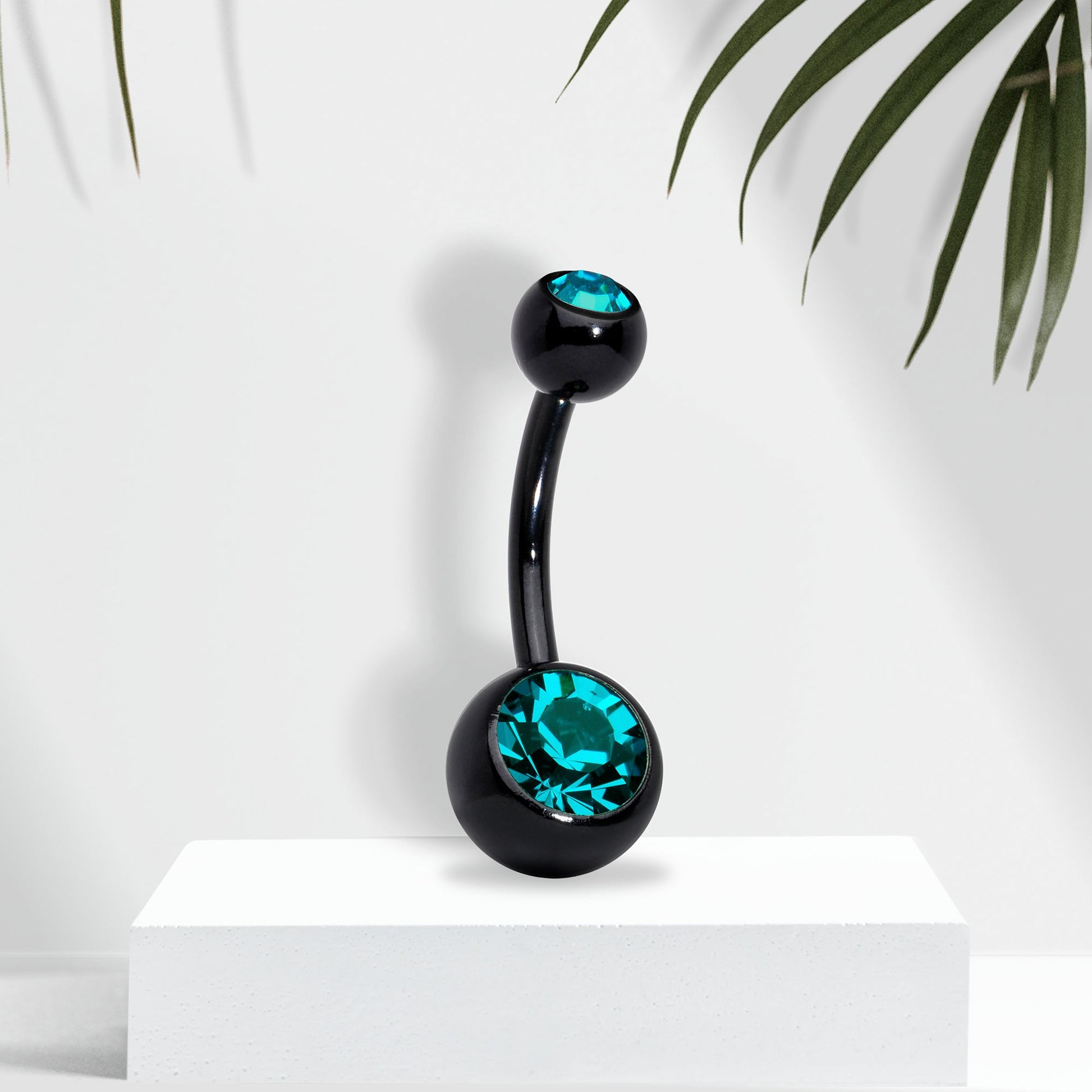 Black Zircon Double Gem Anodized Titanium Belly Ring