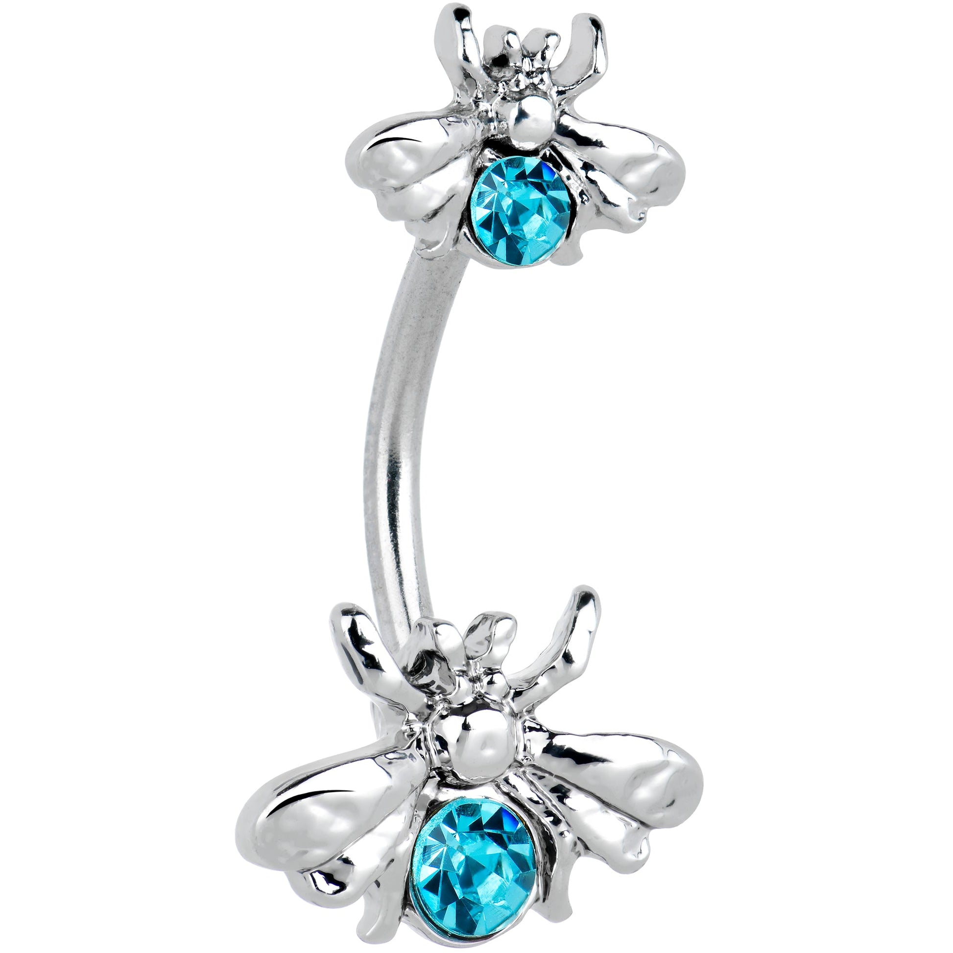 Blue Gem Bees Beautiful Insect Double Mount Belly Ring