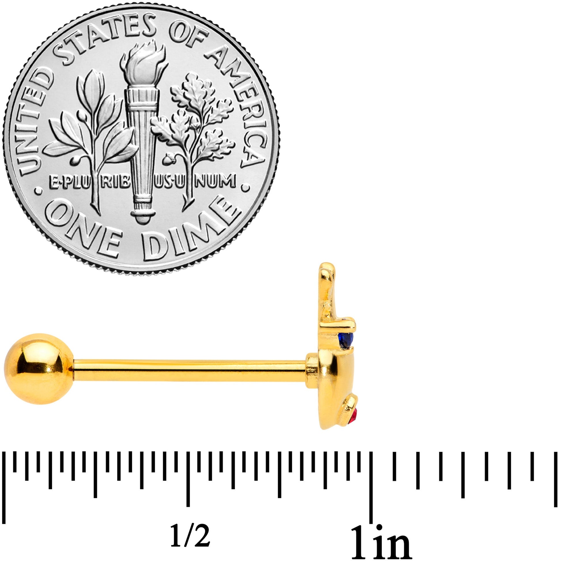 Blue Red CZ Gem Gold Tone Reindeer Christmas Barbell Tongue Ring