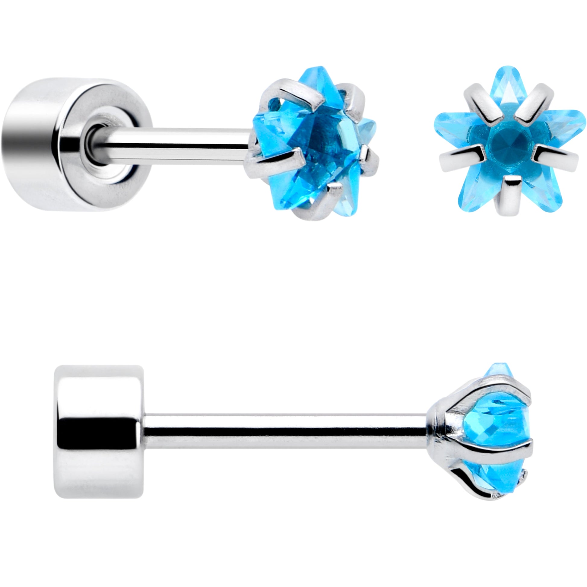 Blue Star CZ Flat Back Stud Earrings - 3 Pairs