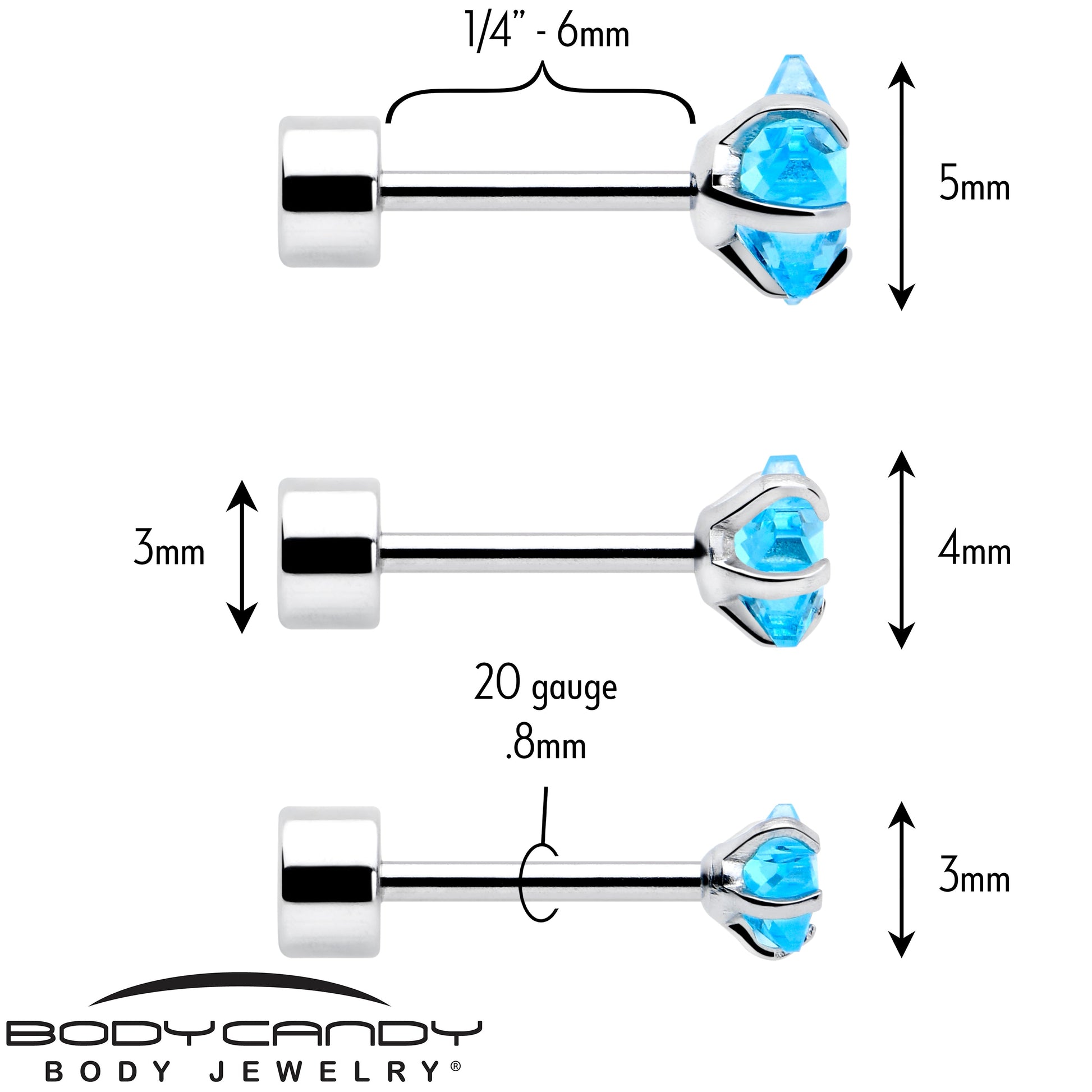 3mm 4mm and 5mm CZ Trio Earring 3 Pack of Flat Back Stud Earrings
