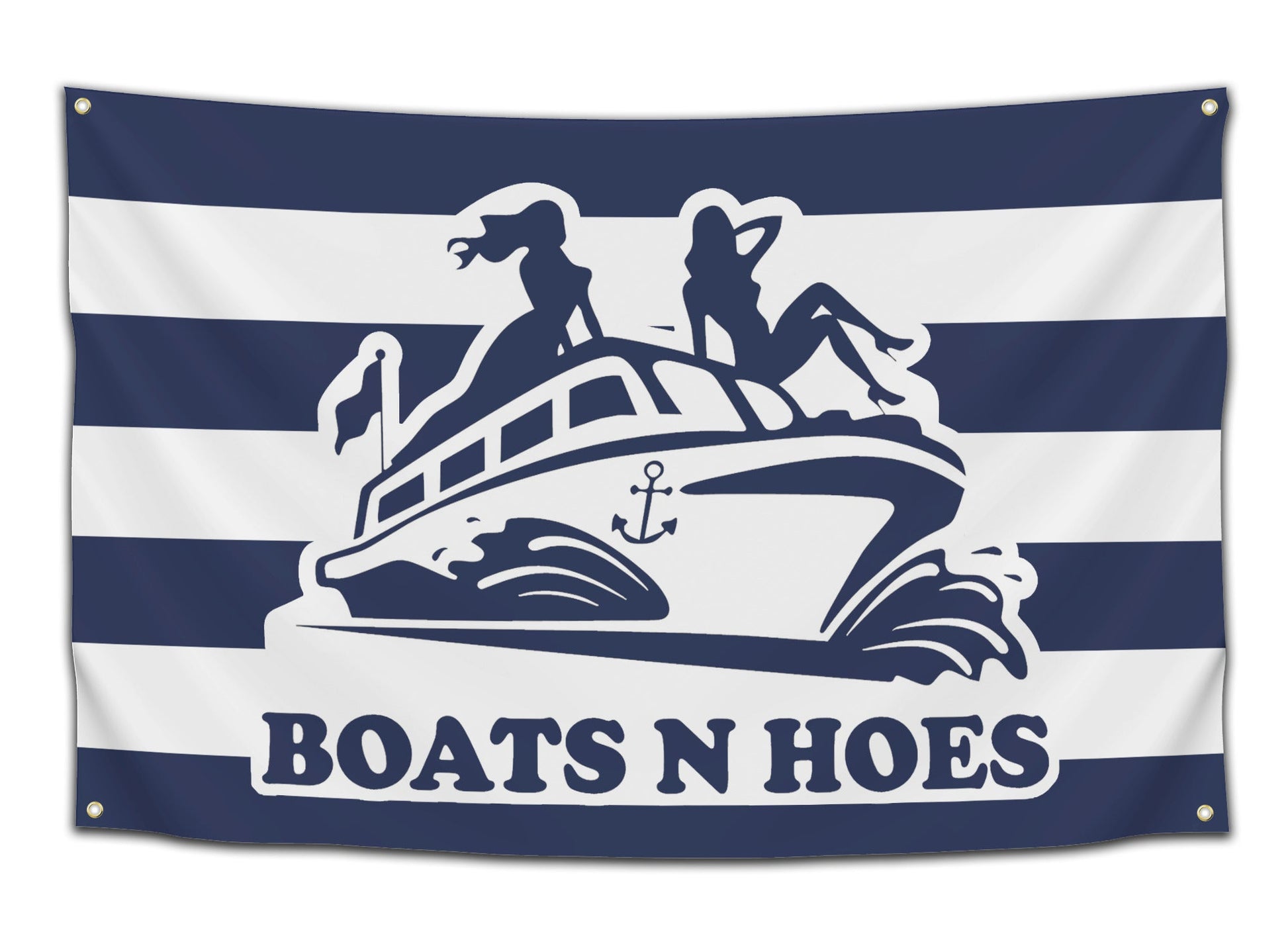 Take your room from landlocked to legendary with the ultimate nod to Step Brothers culture. Whether you’re throwing a rager or just vibing, this “Boats N Hoes” flag guarantees smooth sailing.